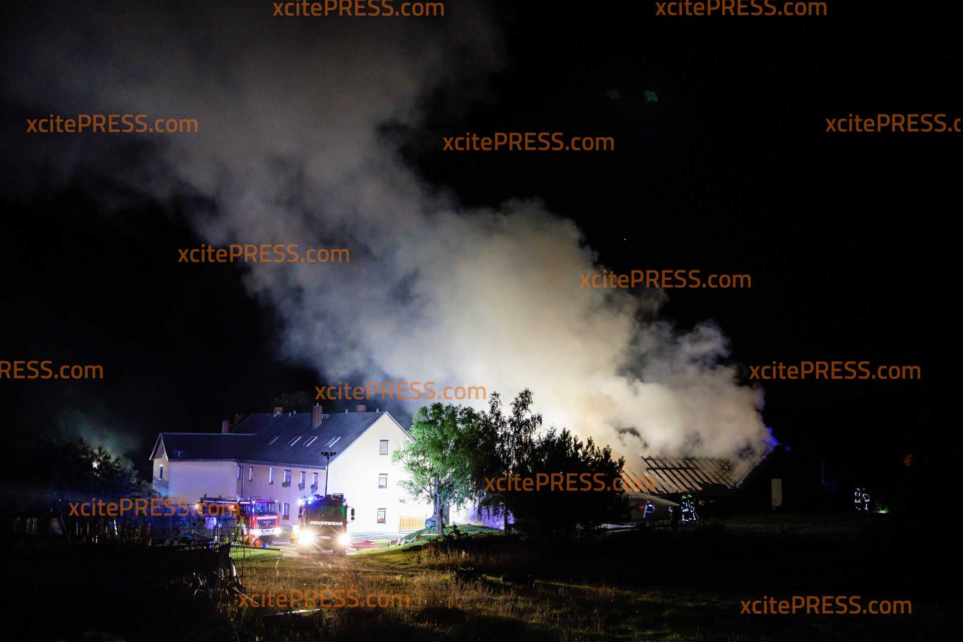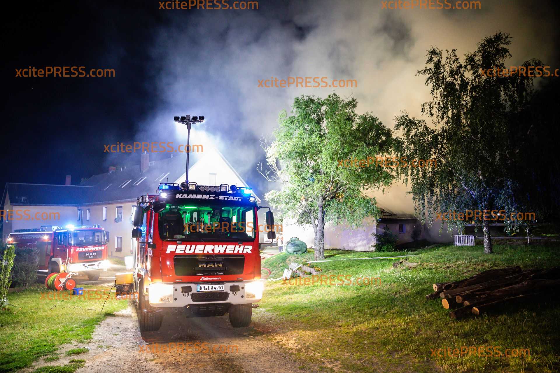 Großbrand bei Kamenz: Scheune steht in Flammen - Stallung brennt nieder