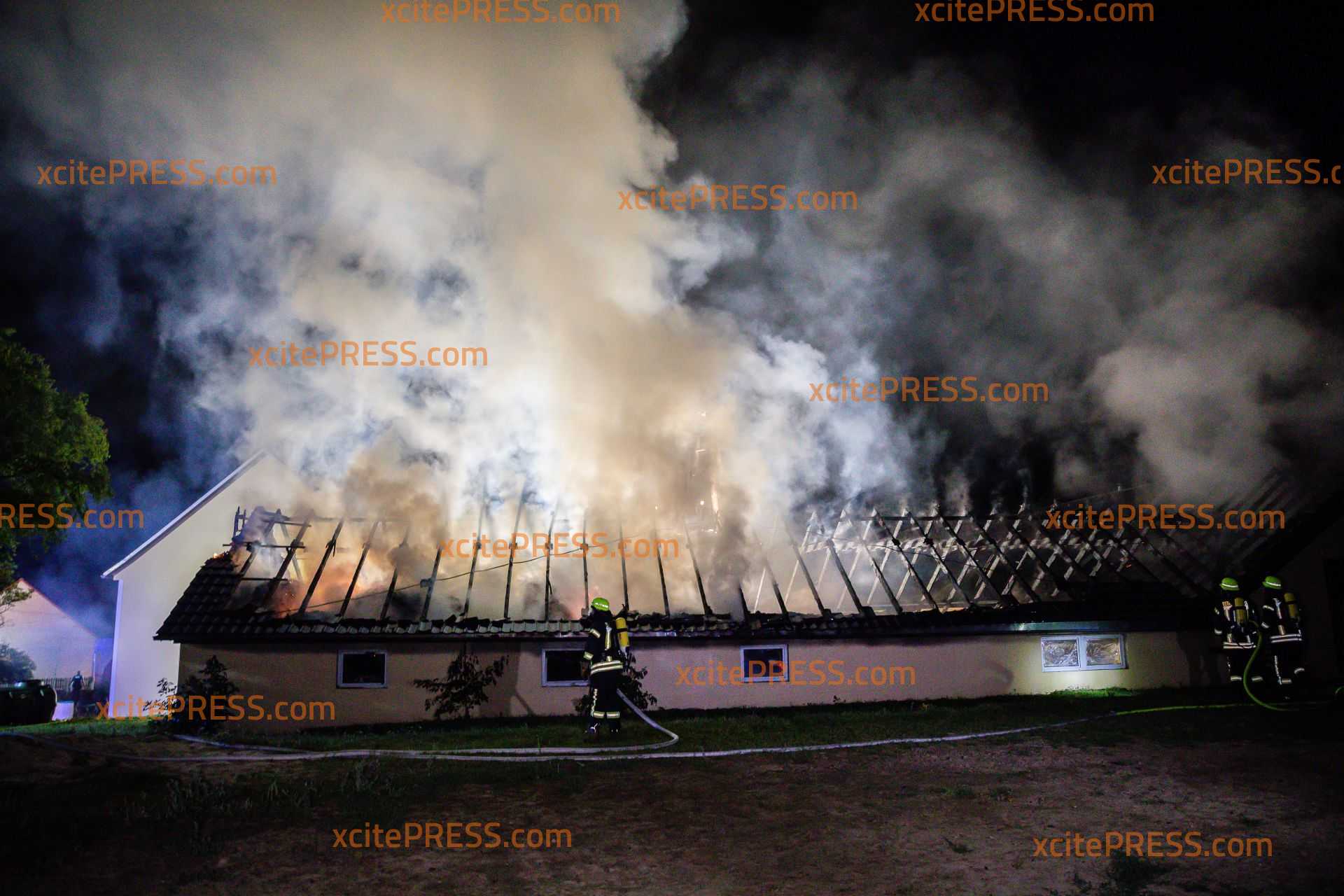 Ein Übergreifen der Flammen auf ein angrenzendes Wohnhaus konnte durch die Feuerwehr verhindert werden. Durch das Feuer verendete unbestätigten Angaben zufolge mindestens ein Pferd - ein Tierarzt war vor Ort, um weitere verletzte Tiere zu untersuchen und möglicherweise einzuschläfern. Feuerwehrleute fanden unter anderem zwei völlig verängstigte Ponys mitten in einem völlig verqualmten Gebäudeteil.
