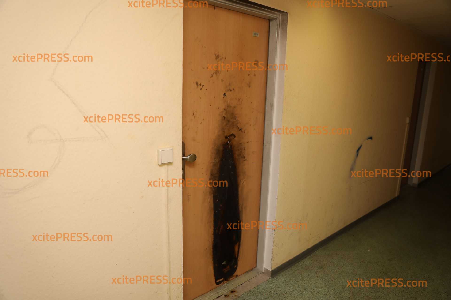 Ein zunächst unbekannter Täter setzte mittels eines kompletten Grillanzünderpakets die Tür einer Wohnung in der 3. Etage des Mehrfamilienhauses in Brand. Diese wurde dadurch erheblich beschädigt. Nachdem der Brand durch die Feuerwehr gelöscht und der Hausflur gelüftet war, wurde die Wohnungstür geöffnet. In der Wohnung befanden sich keine Personen, wobei Hinweise darauf hin deuteten, dass sich kurz zuvor Personen in den Räumen aufgehalten hatten. Der Mieter, ein 22-jähriger Iraker, wird selbst mit Haftbefehl gesucht. Die ersten Ermittlungen und Absuchen im Nahbereich führten zur Feststellung und vorläufigen Festnahme eines Tatverdächtigen. Bei diesem handelt es sich um einen 23-jährigen Libyer. Dieser wurde in den Polizeigewahrsam verbracht. Die Höhe des Sachschadens ist derzeit nicht bekannt.