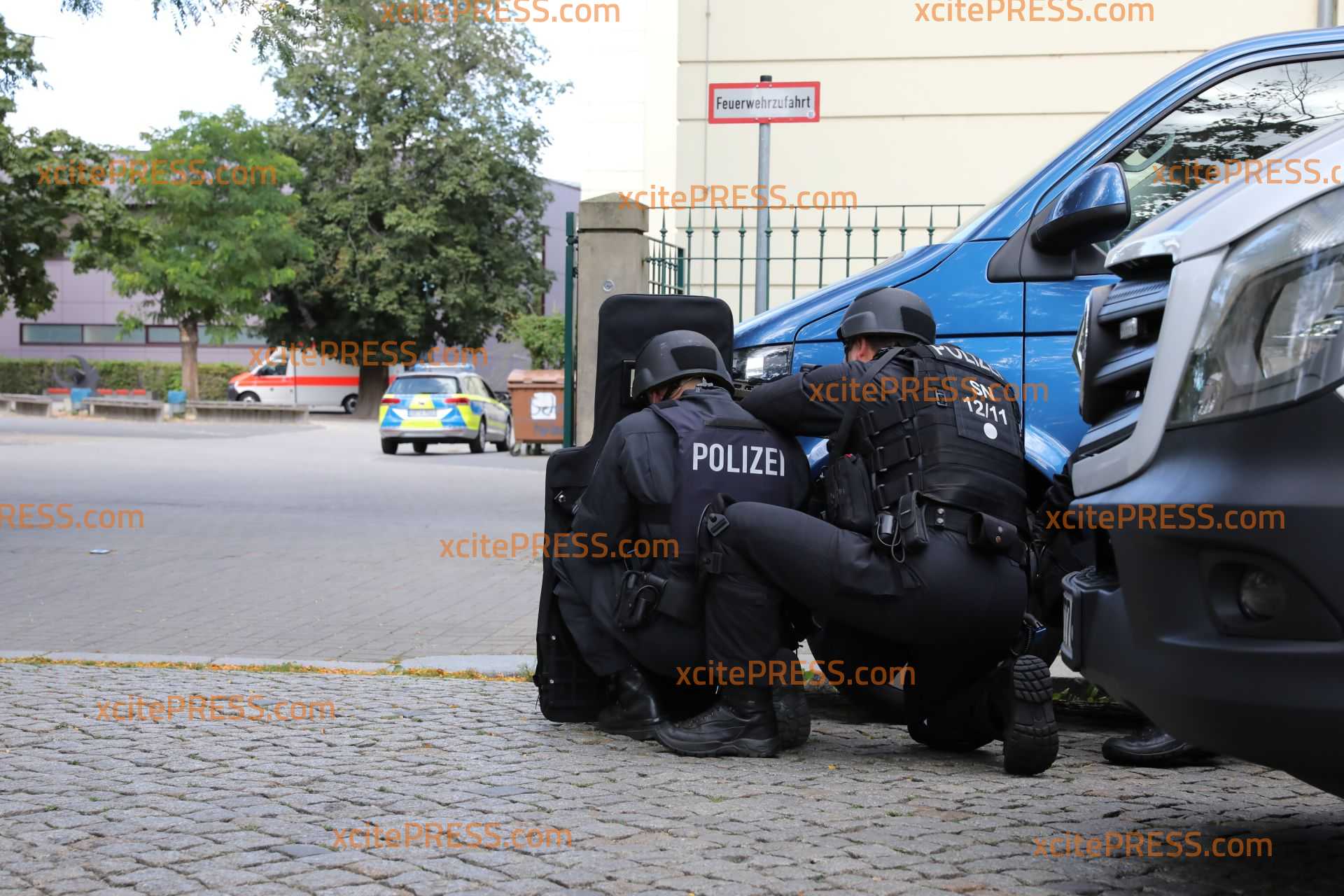 Ein Großaufgebot an Einsatzkräften rückte am Dienstag zur Oberschule "Am Pohlandplatz" in Dresden aus. Hier kam es am Vormittag zu einer Übung der Polizei, bei welcher der Ernstfall eines Ammoklaufes geprobt wurde. Dabei wurden verschiedene Szenarien durchlaufen, wie zum Beispiel das Eindringen in das Objekt, das Sichern von Geiseln und der Umgang mit Verletzten.