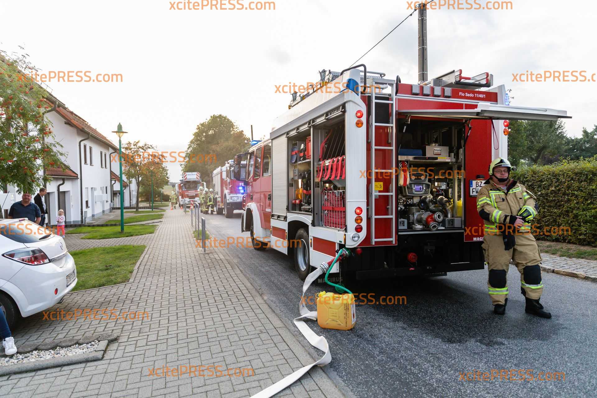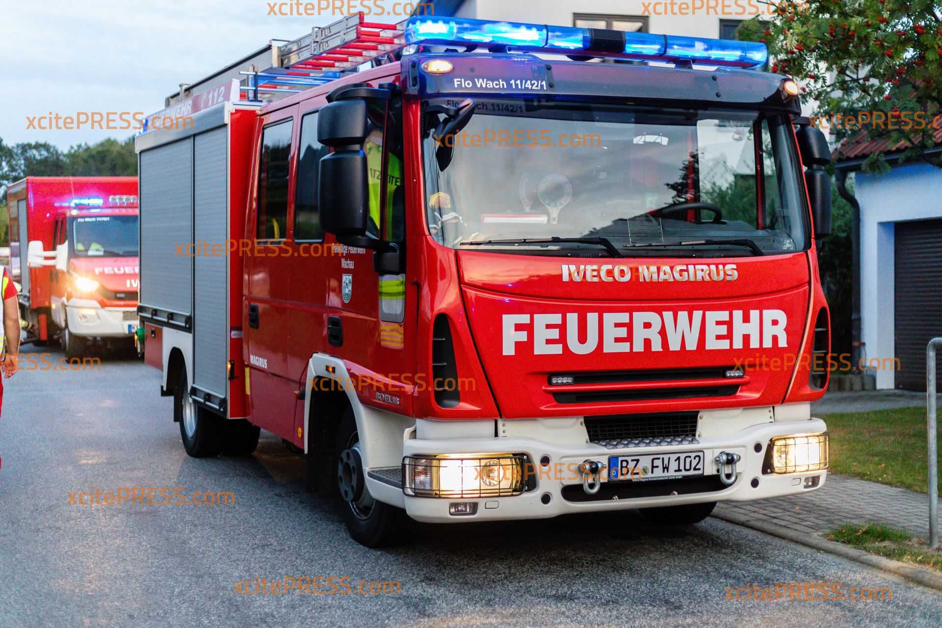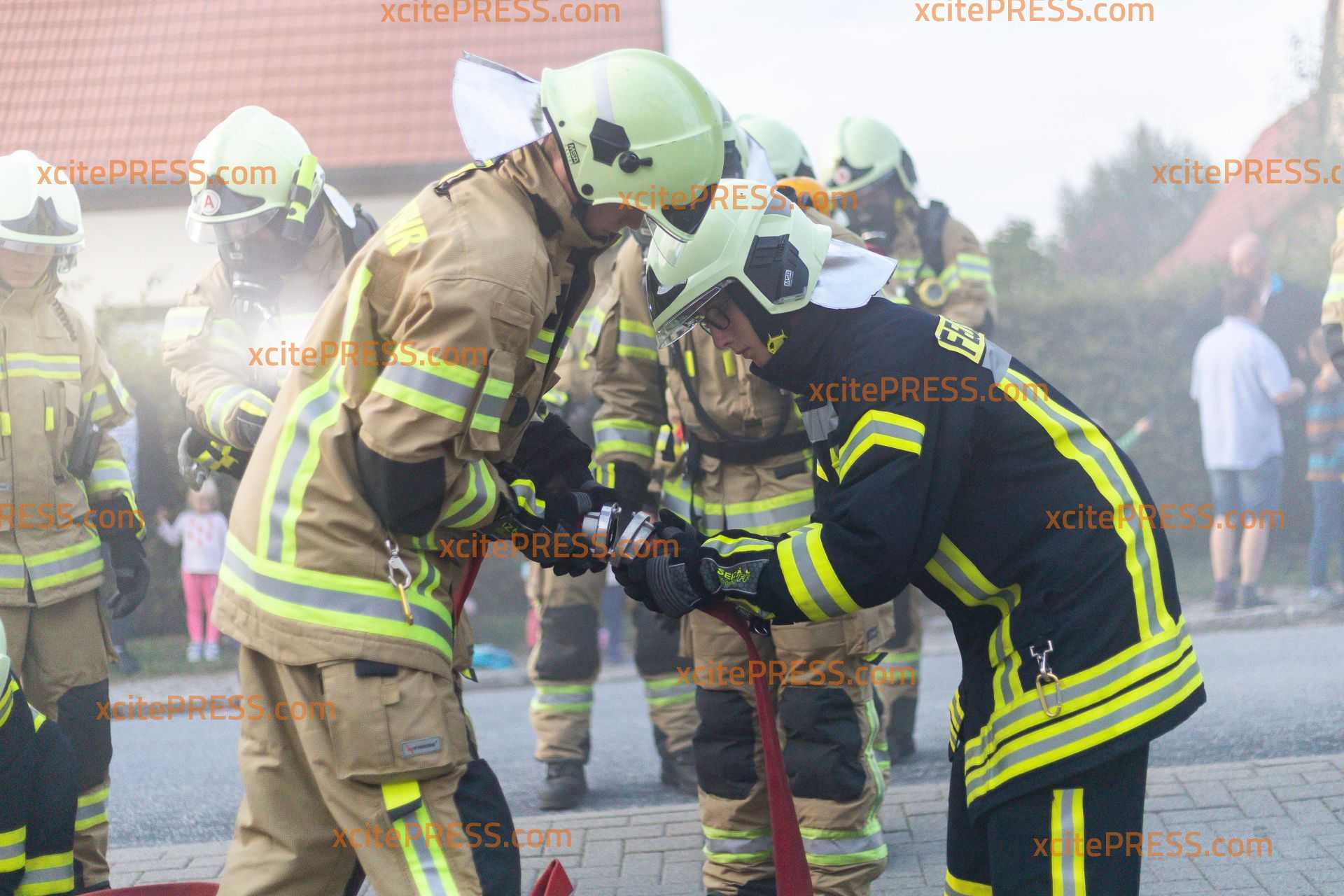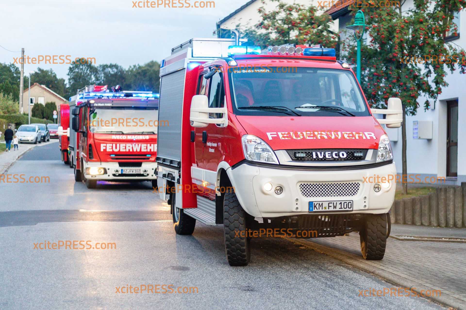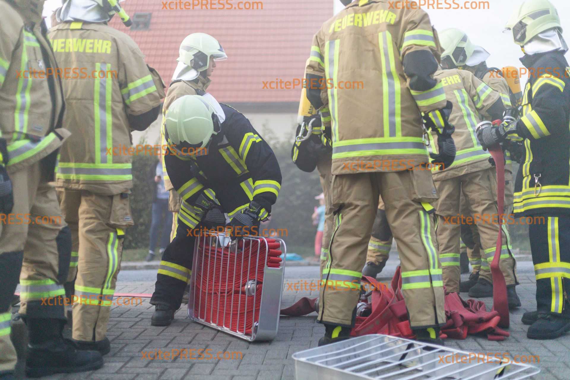 Die Gemeindefeuerwehr Wachau hat am Montag bei ihrer Herbstübung das Vorgehen bei einem Brand in einer Tiefgarage trainiert. Um die Übung so real wie möglich zu gestalten, wurden die Einsatzkräfte kurz nach 18 Uhr über Sirene und Funkmeldeempfänger alarmiert. Nach und nach trafen dann die acht Fahrzeuge der Wehren aus Seifersdorf, Wachau, Lomnitz und Leppersdorf ein. Die Kameraden bauten eine Wasserversorgung aus Hydranten auf. Gleichzeitig gingen Trupps unter schwerem Atemschutz zur Personensuche und Menschenrettung in die weitläufige Tiefgarage vor. Da ein PKW-Brand simuliert wurde, baute man auch einen Schaumangriff auf. Sicherheitstrupps standen immer in Bereitschaft, um die vorgehenden Trupps im Notfall retten zu können. Bei Bränden in Tiefgaragen stellt der Rauch immer eine besondere Gefahr dar und schränkt die Sicht oftmals noch weiter ein, als bei normalen Gebäude branden. Daher brachten die Einsatzkräfte zum Schluss noch mehrere Lüfter in Stellung, um das Gebäude rauchfrei zu machen. Beobachtet wurde die Feuerwehr bei ihrer Übung von zahlreichen interessierten Anwohnern und Familien mit Kindern. Vielleicht konnte so ja auch der ein oder andere Mitstreiter für die Gemeindefeuerwehr Wachau begeistert werden.