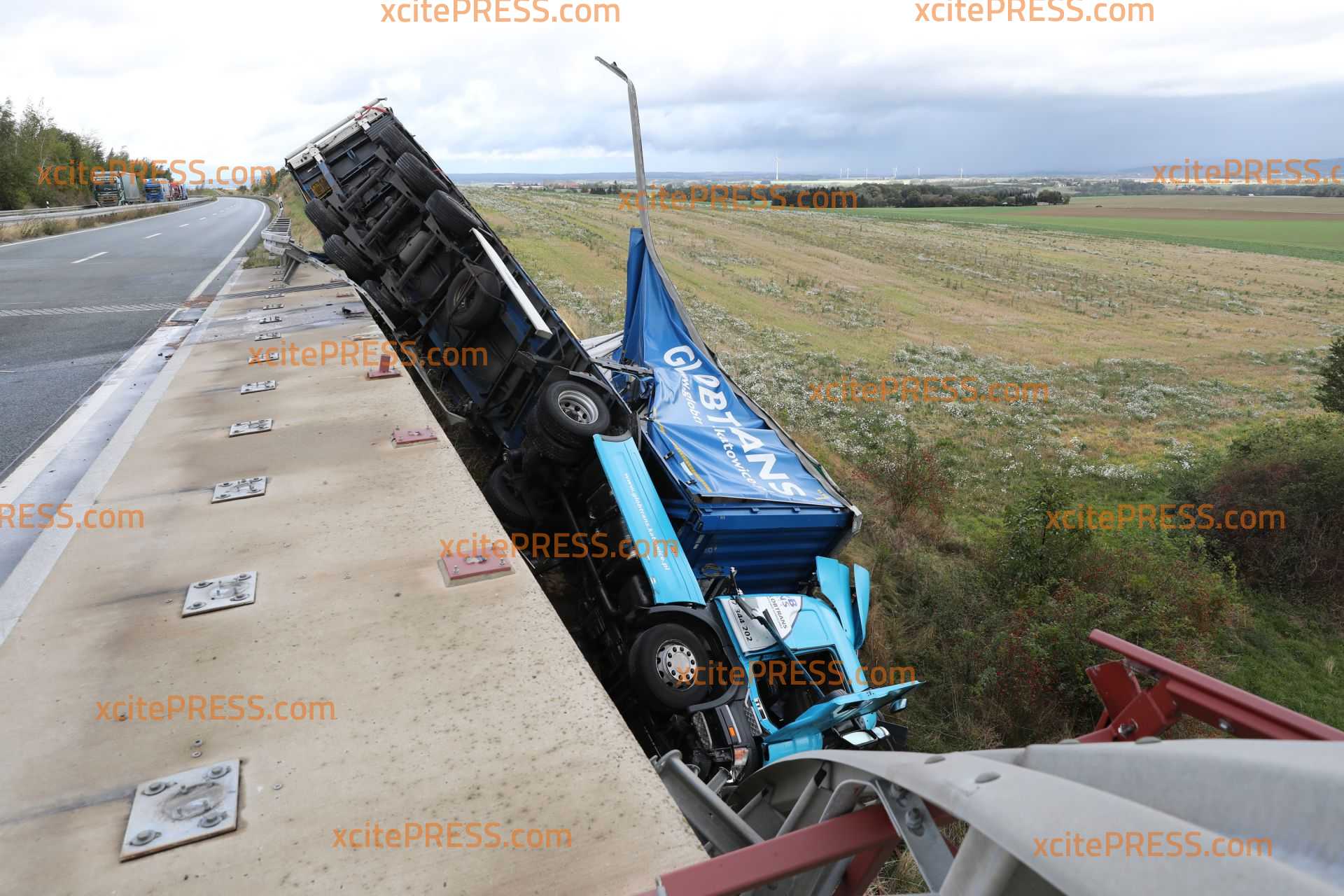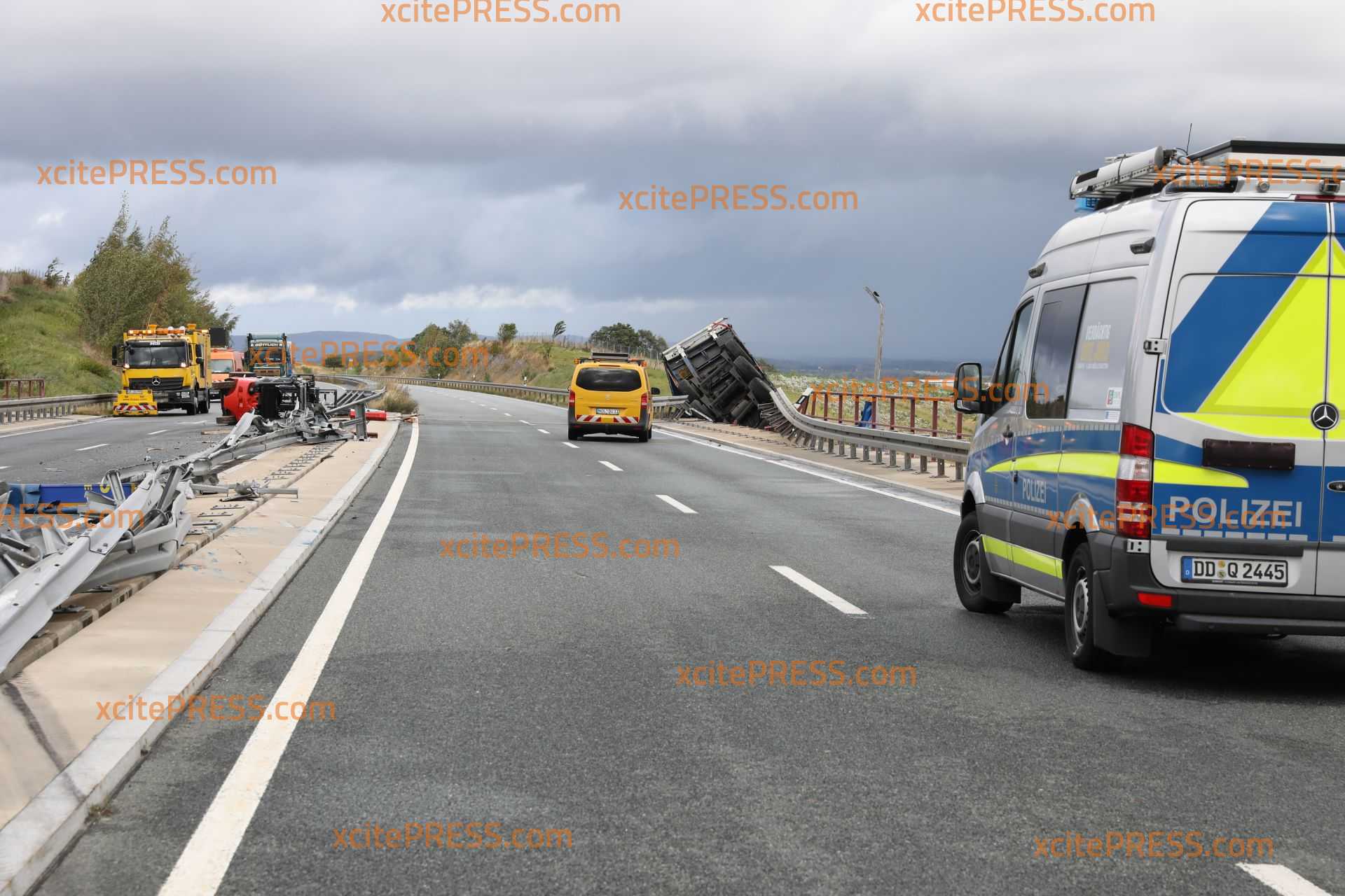 Zu einem Verkehrsunfall kam es am Montagmorgen gegen 9 Uhr auf der B178 zwischen Löbau und Weißenberg. Aus bisher noch ungeklärter Ursache kam hier ein LKW ins Schlingern. Dabei riss er ca. 100m Leitplanke ab, verlor seinen Gabelstapler und stürzte anschließend eine Brücke herunter. Ersten Informationen zur Folge sollen Ersthelfer den Fahrer aus seiner Kabine befreit haben. Dieser wurde anschließend verletzt in ein Krankenhaus gebracht. Ob die starken Sturmböen Schuld am Unfall waren ermittelt nun die Polizei. Derzeit wird der verunglückte LKW mit schwerem Gerät geborgen.