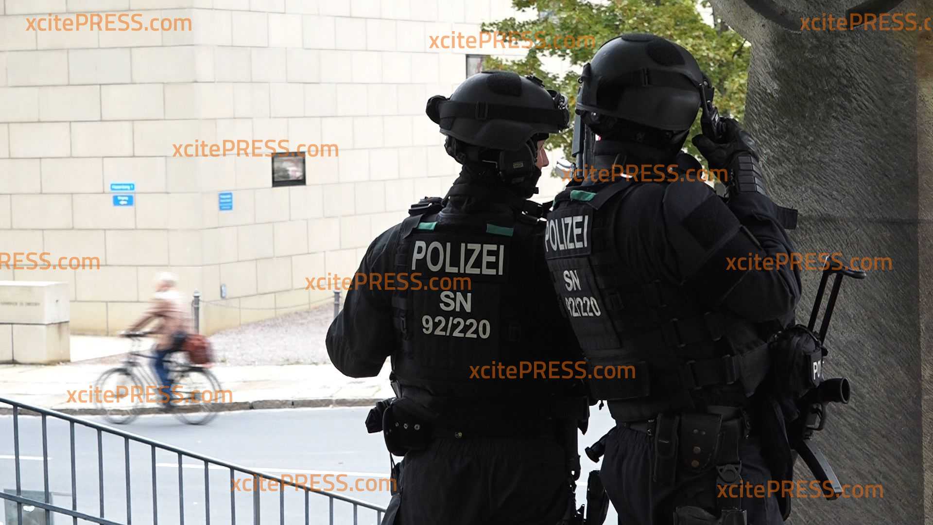 Polizei bewacht schwer bewaffnet Dresdener Synagoge: