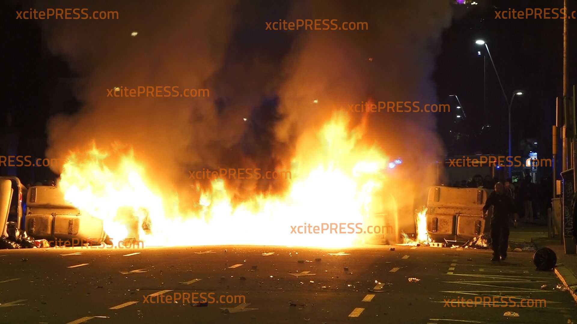 - Vermummte werfen Steine und fachen Feuer an