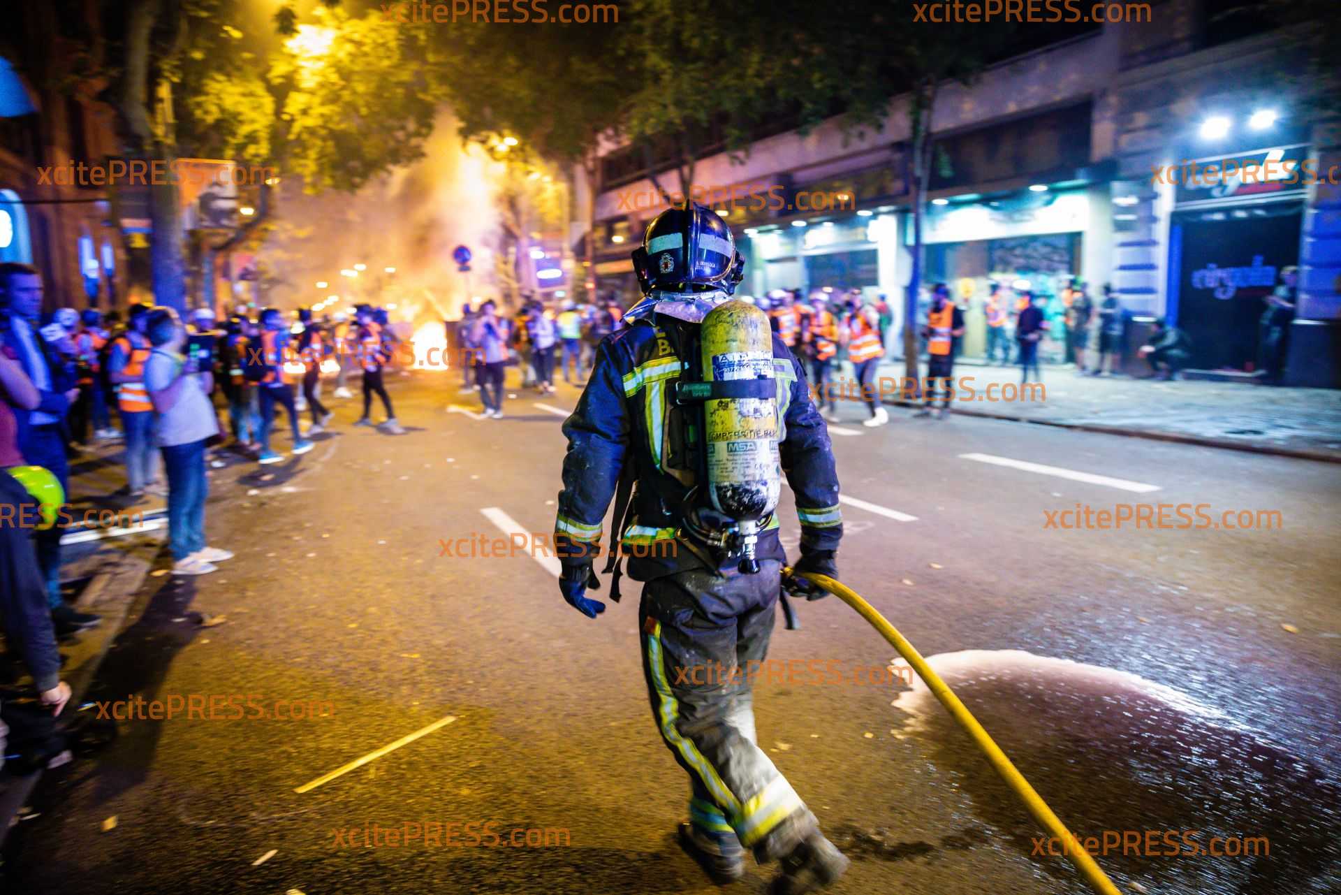 Auch in der Nacht von Samstag zu Sonntag kehrt keine Ruhe im Stadtzentrum von Barcelona ein - im Gegenteil: Immer machtloser scheinen die Einsatzkräfte von Polizei und Feuerwehr gegen die Demonstranten - möglicherweise nicht zuletzt wegen der kräftezehrenden letzten Tage.