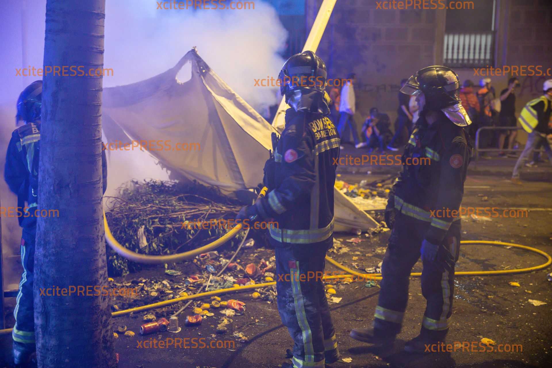 Wieder kam es zu brennenden Barrikaden - die Feuerwehr ist mittlerweile den Demonstranten ausgeliefert - musste ihre Löschmaßnahmen unterbrechen. Sobald die Feuerwehrleute einen Löschversuch unternahmen, wurden sie von Demonstranten attackiert. Nur durch den Einsatz von Gummigeschossen konnten weitere Löschmaßnahmen durchgeführt werden.