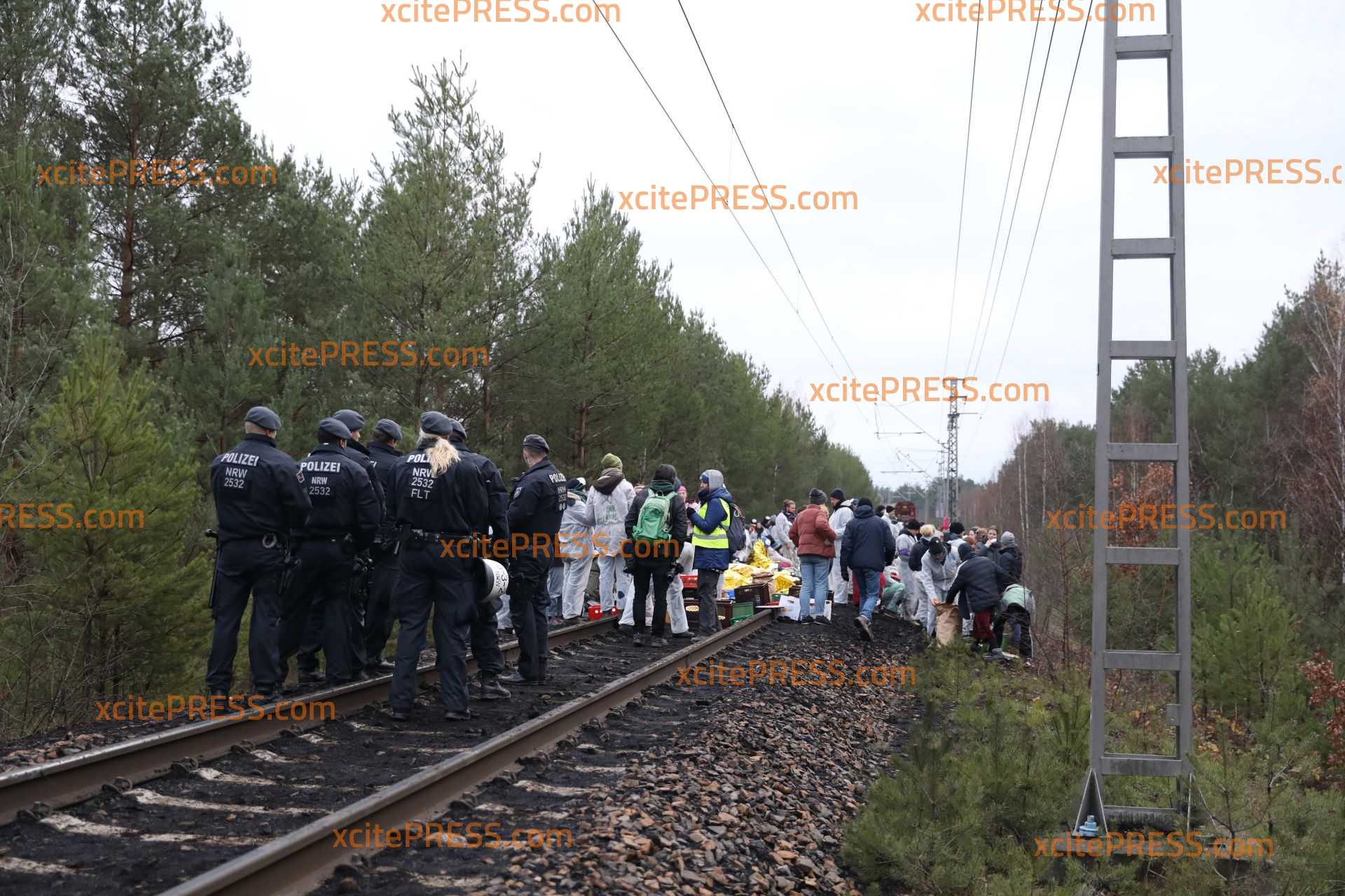Aktivisten besetzen Gleise bei Jänschwalde - offenbar bereiten sie sich auf lange Nacht vor