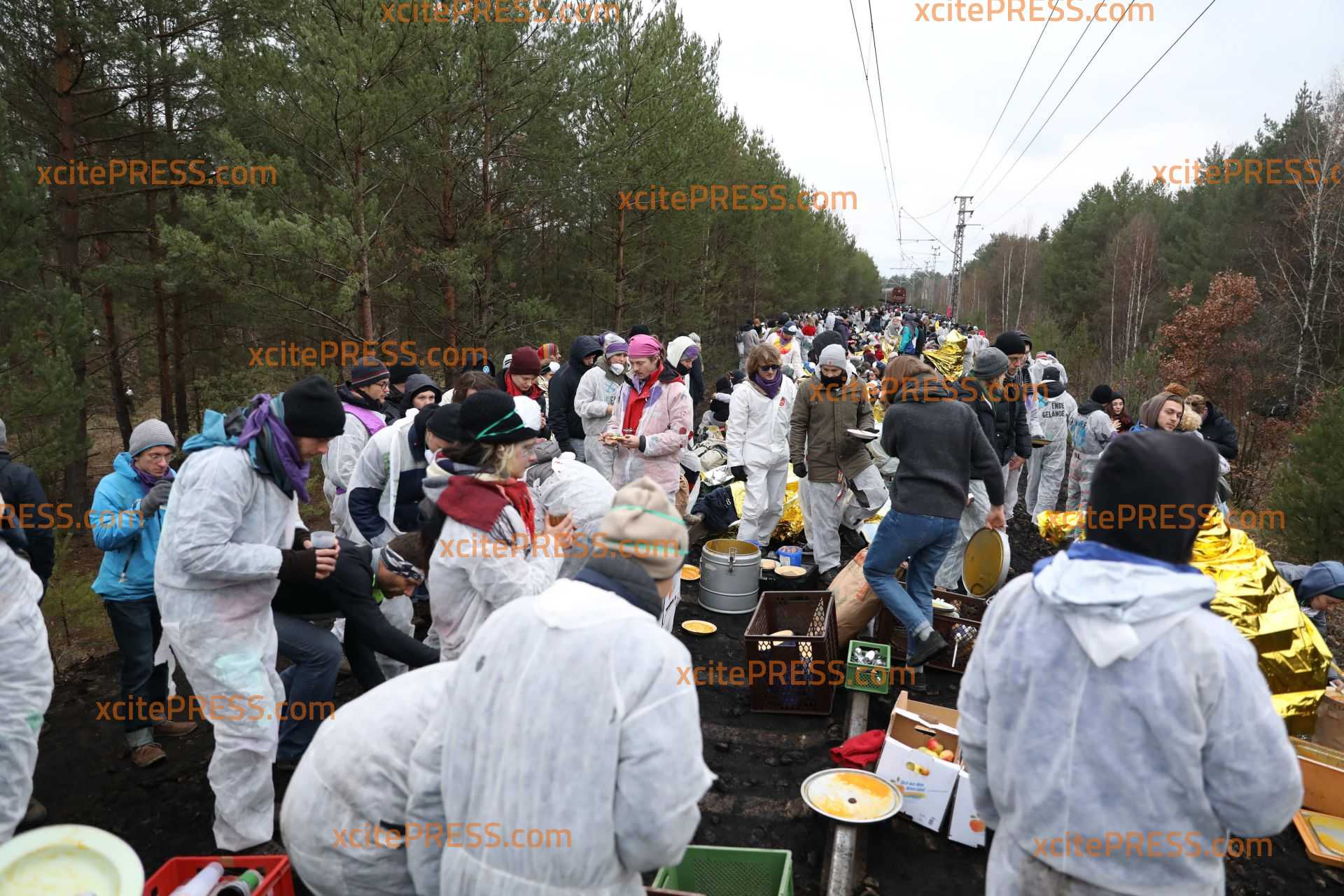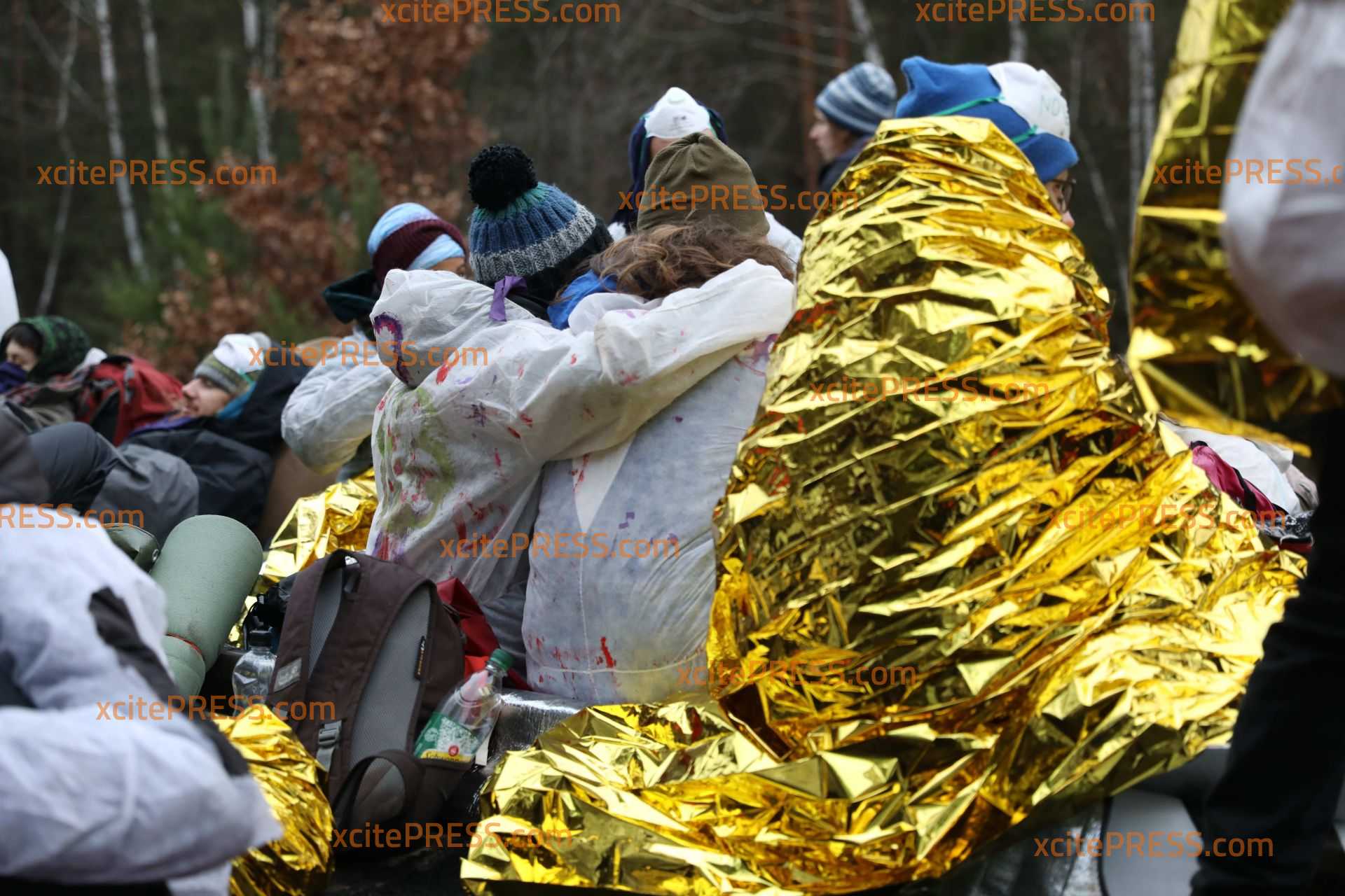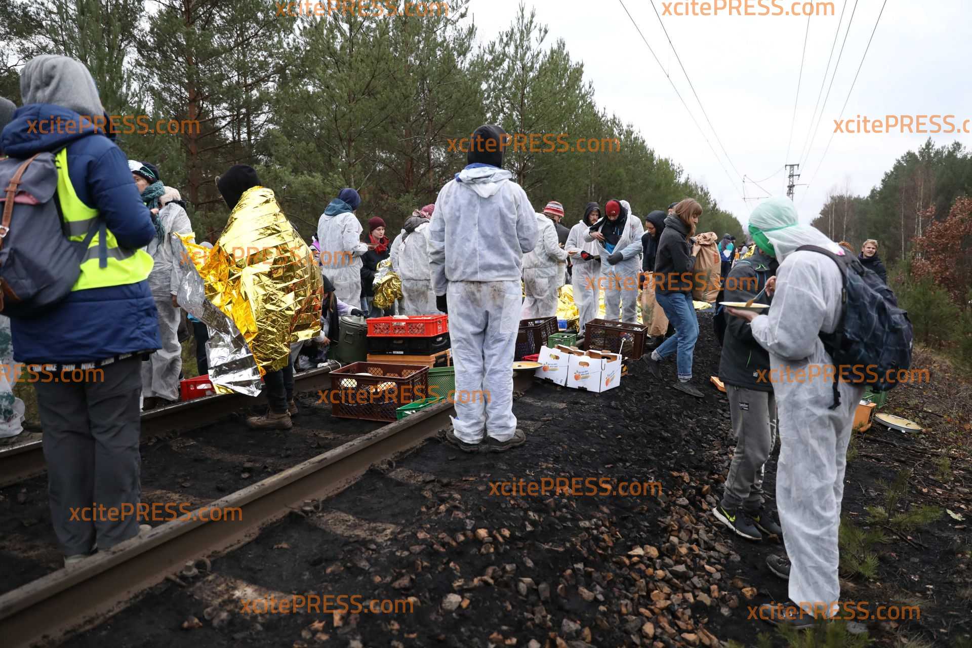 UPDATE: 300 Aktivisten besetzen weiterhin Gleise bei Jänschwalde - offenbar bereiten sich die Demonstranten auf eine lange Nacht vor, sie wickeln sich in Rettungsdecken ein, auch die Essensversorgung wird durch Anhänger der Gruppierung sichergestellt.