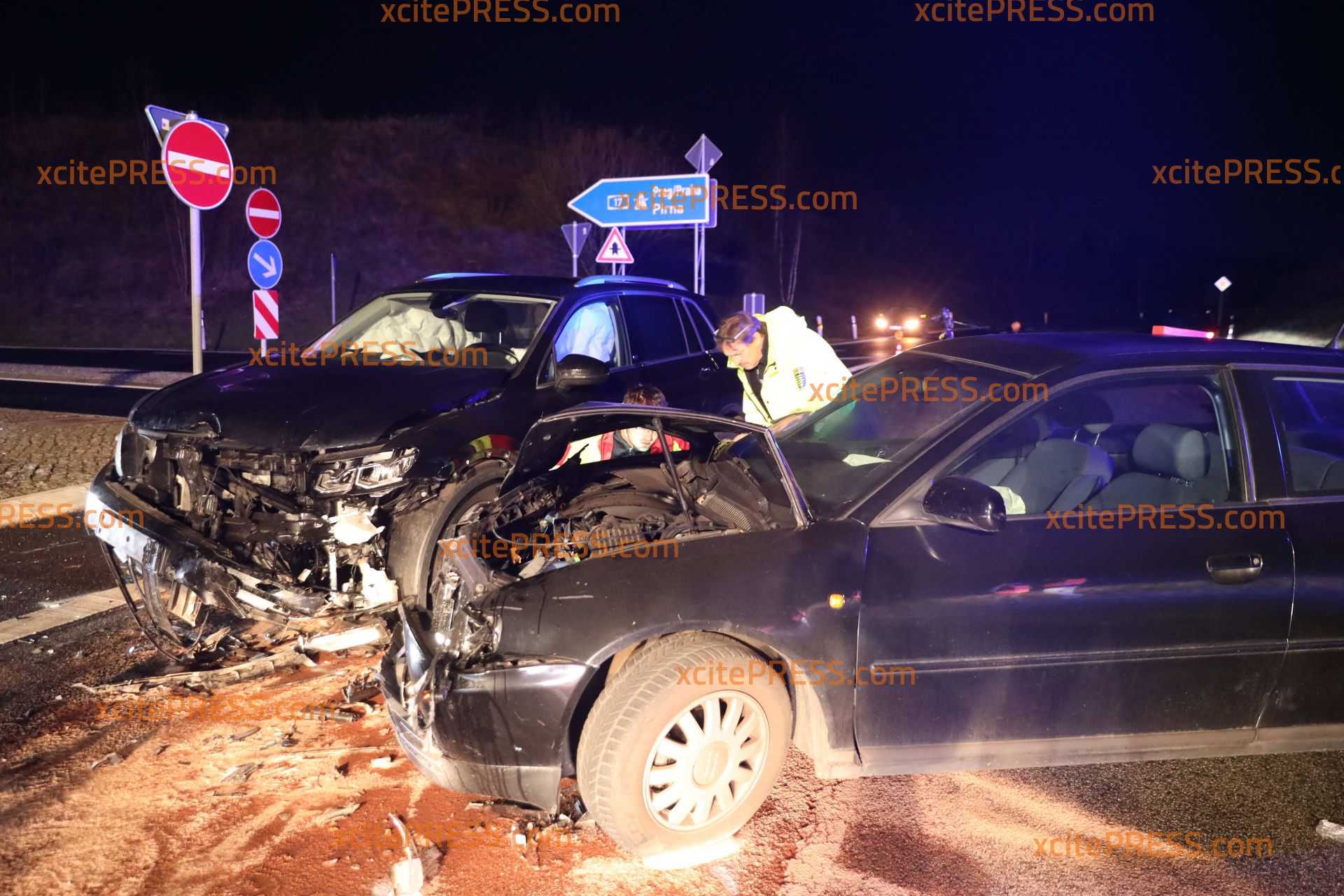 Zwei Fahrzeuge kollidierten dort direkt an der Auf- und Abfahrt der Autobahn in beziehungsweise aus Richtung Prag.