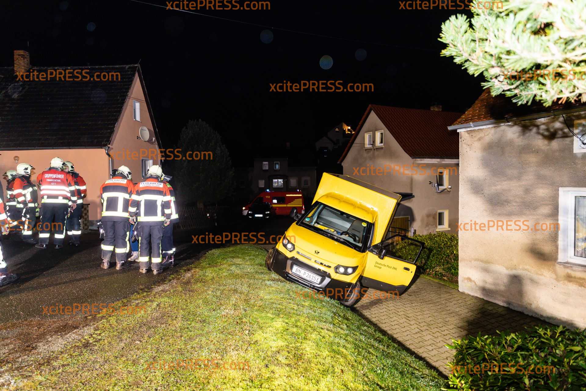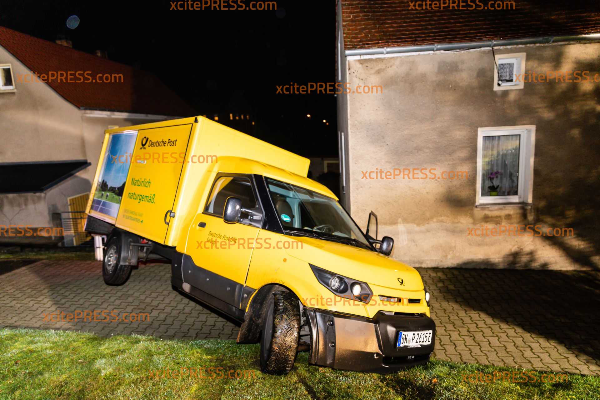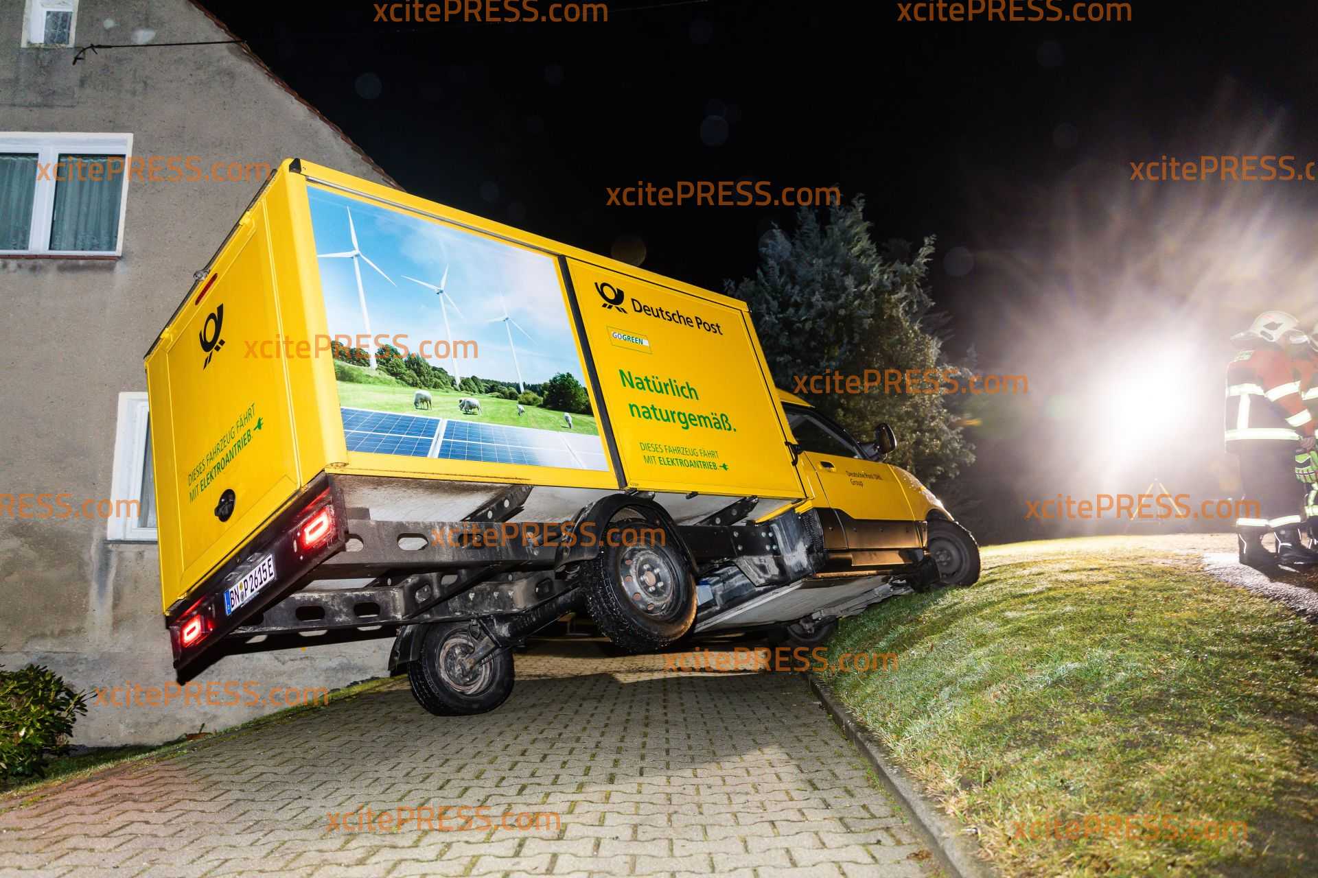 Ein Postauto in Schräglage hat am Dienstagabend die Freiwillige Feuerwehr in Frankenthal bei Bischofswerda beschäftigt. Auf einer Nebenstraße hatte die Postbotin offenbar mit dem Streetscooter rangiert und war dabei an einem Hang in die verzwickte Situation geraten. Das Elektrofahrzeug blieb so schräg stehen, dass es umzukippen drohte. Mit zahlreichen Briefsendungen an Bord musste der Wagen erstmal stehen bleiben. Die ehrenamtlichen Helfer der örtlichen Feuerwehr rückten an, sperrten das Gelände weiträumig ab und sicherten das Zustellfahrzeug. Dazu wurde ein Stahlseil über einen sogenannten Greifzug mit einem geeigneten Anschlagmittel am Löschfahrzeug und das Gegenstück am verunglückten Fahrzeug befestigt. So konnte ein weiteres Abrutschen ausgeschlossen werden. Ein Abschleppunternehmen übernahm dann die fachgerechte Bergung des Autos. Währenddessen leuchtete die Feuerwehr die Einsatzstelle noch aus. Im Einsatz waren 15 Kameraden der Feuerwehr mit drei Fahrzeugen.
