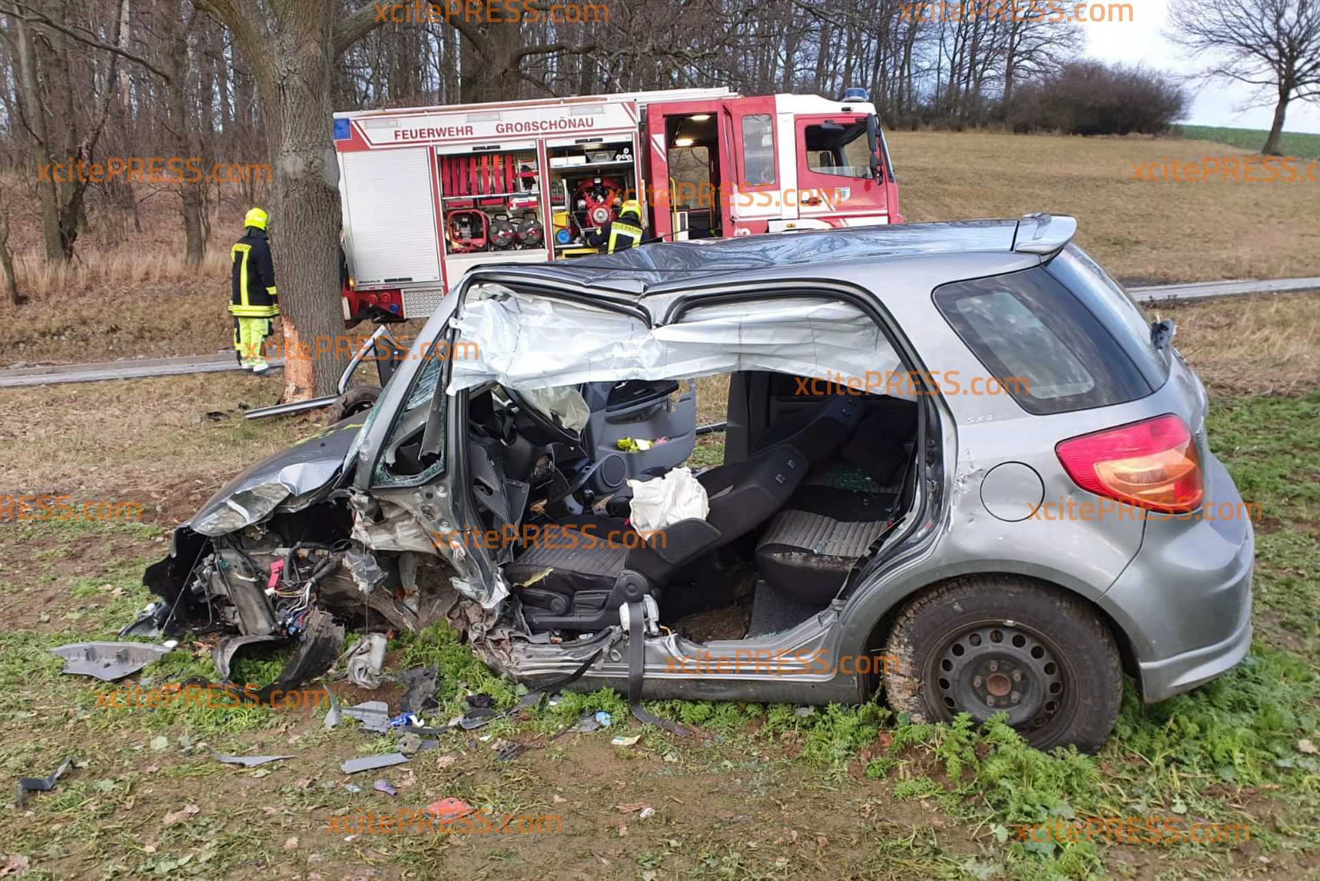Der Crash mit einem Wildschein am heutigen Mittwochnachmittag hatte für die Fahrerin eines Suzukis schwere Folgen. Nicht nur, dass das Fahrzeug nach dem Zusammenstoß mit dem Wildtier gegen einen Baum und auf ein Feld schleuderte, wie die Polizei mitteilte. Die Feuerwehr hatte hart zu arbeiten, um die verletzte Person aus dem völlig verformten Wagen zu befreien.