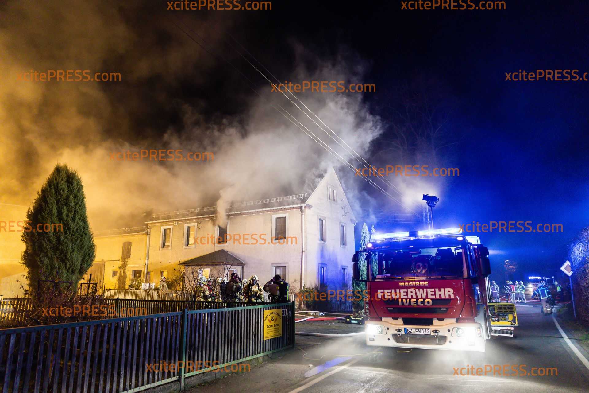 In Lomnitz in der Gemeinde Wachau (Sachsen) ist in der Nacht zu Donnerstag ein Brand in einem unbewohnten Haus ausgebrochen. Ersten Angaben zufolge soll dabei ein Zimmer ausgebrannt sein. Zudem hatte sich das Feuer bis ins Dach durchgefressen. Als die Feuerwehr vor Ort eintraf, drang bereits dichter Qualm aus dem gesamten Gebäude. Mehrere Trupps gingen unter schwerem Atemschutz ins Innere des Hauses vor und konnten die Flammen schnell löschen. Über eine Drehleiter öffnete man außerdem das Dach, um an weitere versteckte Glutnester zu kommen. Dies gestaltete sich nicht gerade einfach. Laut Angaben der Feuerwehr war es sehr schwer, an die betroffenen Stellen im Haus gern zu kommen. Stellenweise sollen auch Gebäudeteile eingestürzt sein. Man musste ein Loch ins Dach sägen, um Wasser auf die Brandstellen bringen zu können. Etliche Trupps waren notwendig, um diese Aufgaben zu bewerkstelligen. Im Einsatz waren alle Feuerwehren der Gemeinde Wachau, sowie die Wehren aus Ottendorf-Okrilla und Großnaundorf. Unterstützt wurden sie vom Diensthabenden Kreisbrandmeister und vom Feuerwehrtechnischen Zentrum aus Kamenz. Dies war mit dem sogenannten Gerätewagen Atemschutz (GW-A) vor Ort, um die Vielzahl an benötigten Atemschutzgeräten sicherzustellen. Während der gesamten Löscharbeiten stand ein Rettungswagen in Bereitschaft, um den Einsatz der Feuerwehrleute abzusichern. Die Polizei hat die Ermittlungen zur Brandursache aufgenommen, womöglich kommt ein spezieller Brandursachenermittler im weiteren Tagesverlauf zum Einsatz. Personen kamen ersten Angaben zufolge nicht zu Schaden.