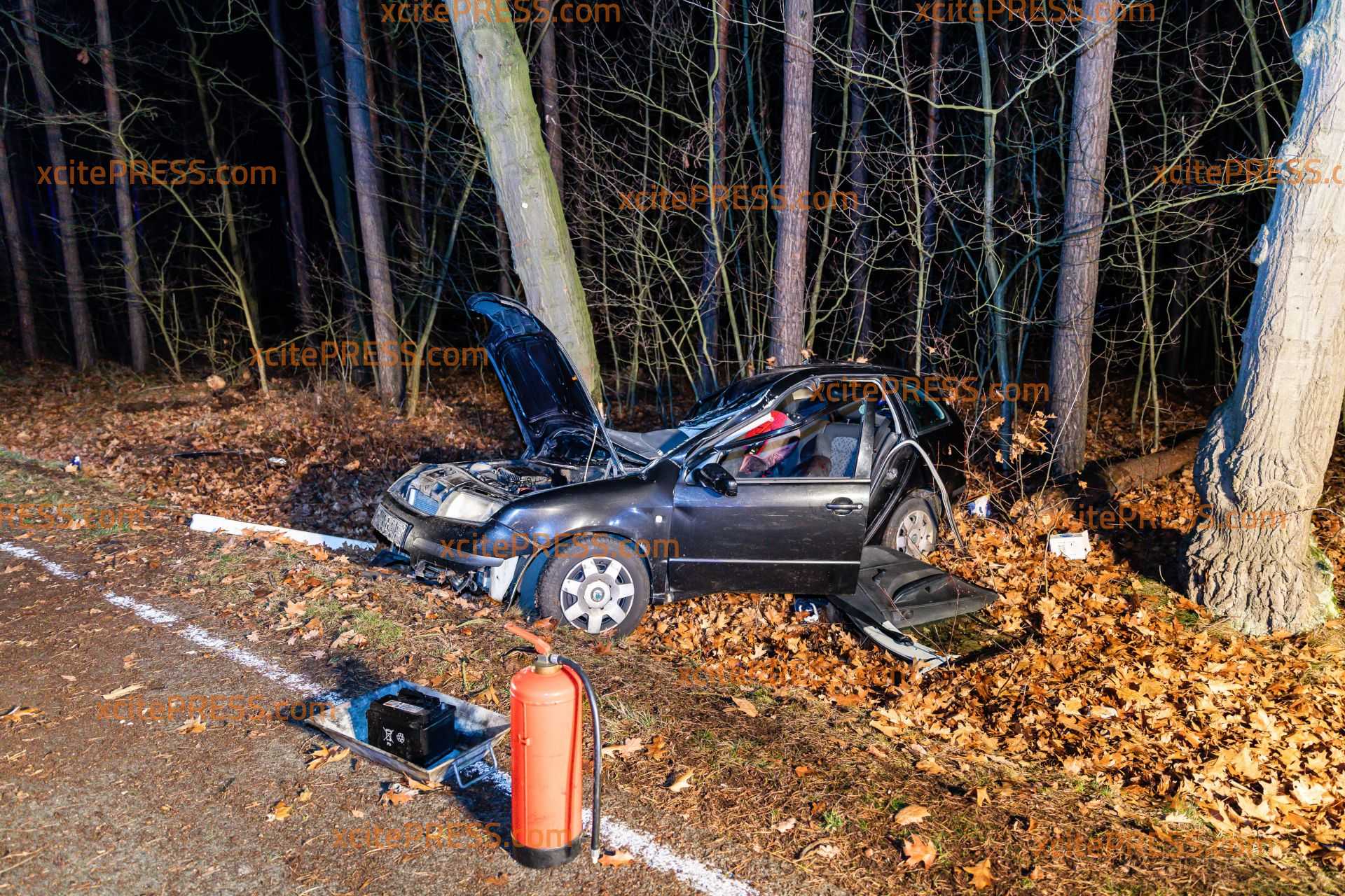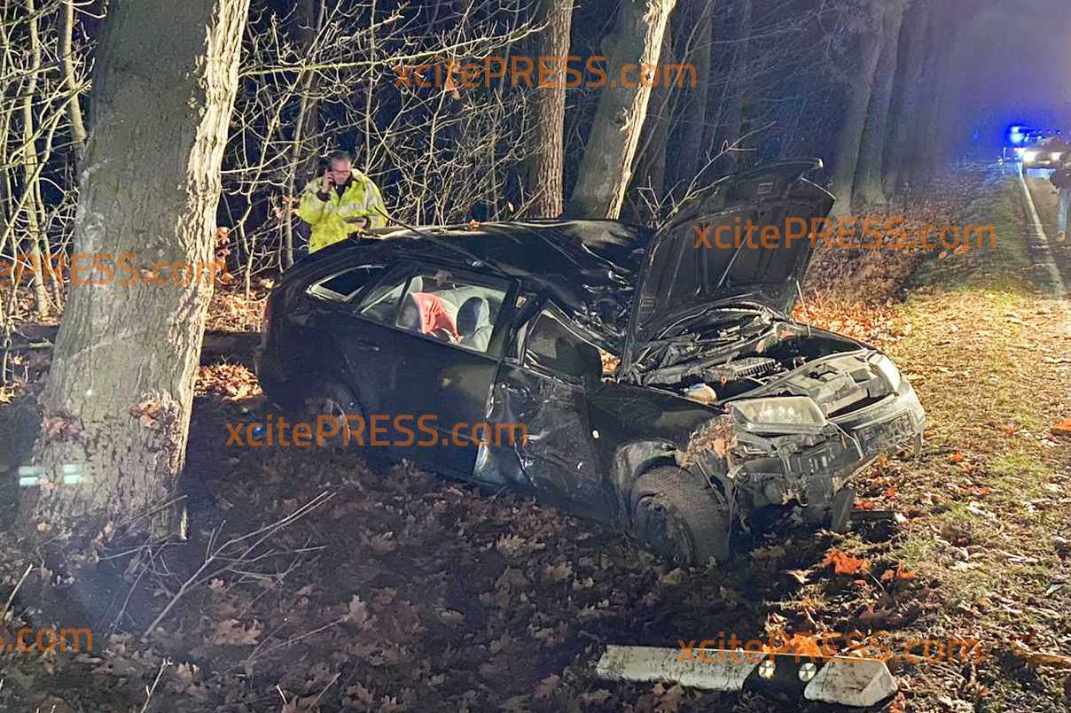 Wie die Polizei auf Nachfrage bestätigte, verlor der Fahrer (†36) eines Skodas vermutlich die Kontrolle über sein Fahrzeug. Dadurch kam er links von der Niesendorfer Straße in Richtung Entenschenke ab und krachte gegen einen der extrem dicken Bäume, die die Straße säumen.