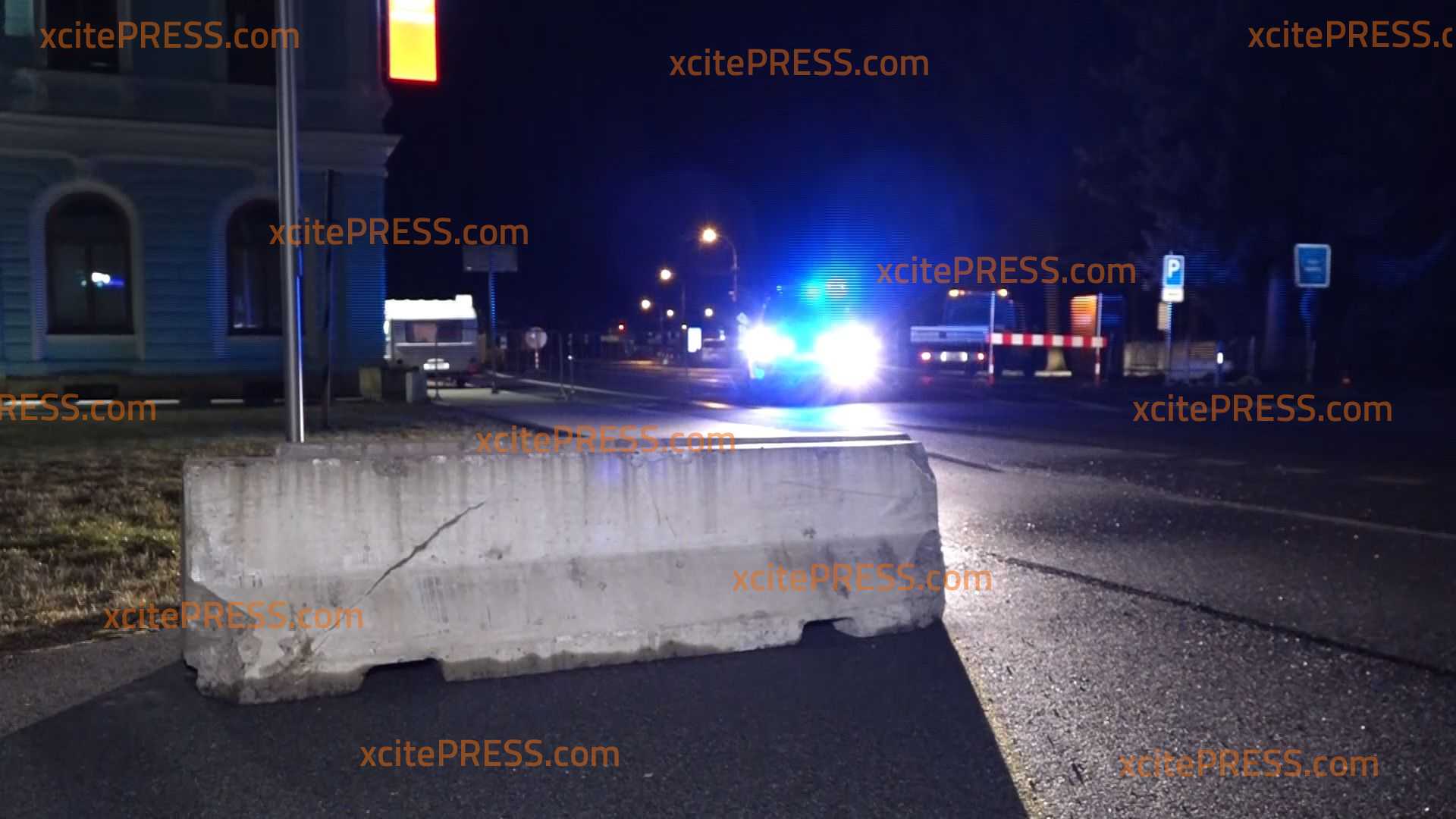- Polizei sperrt Straße mit Blaulicht Seifhennersdorf