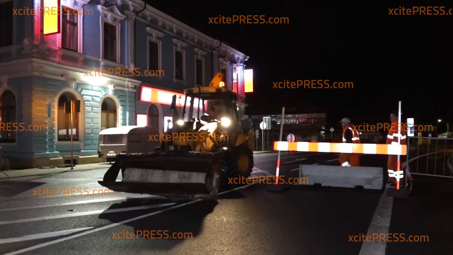 - Betonblöcke werden auf Straße geschoben