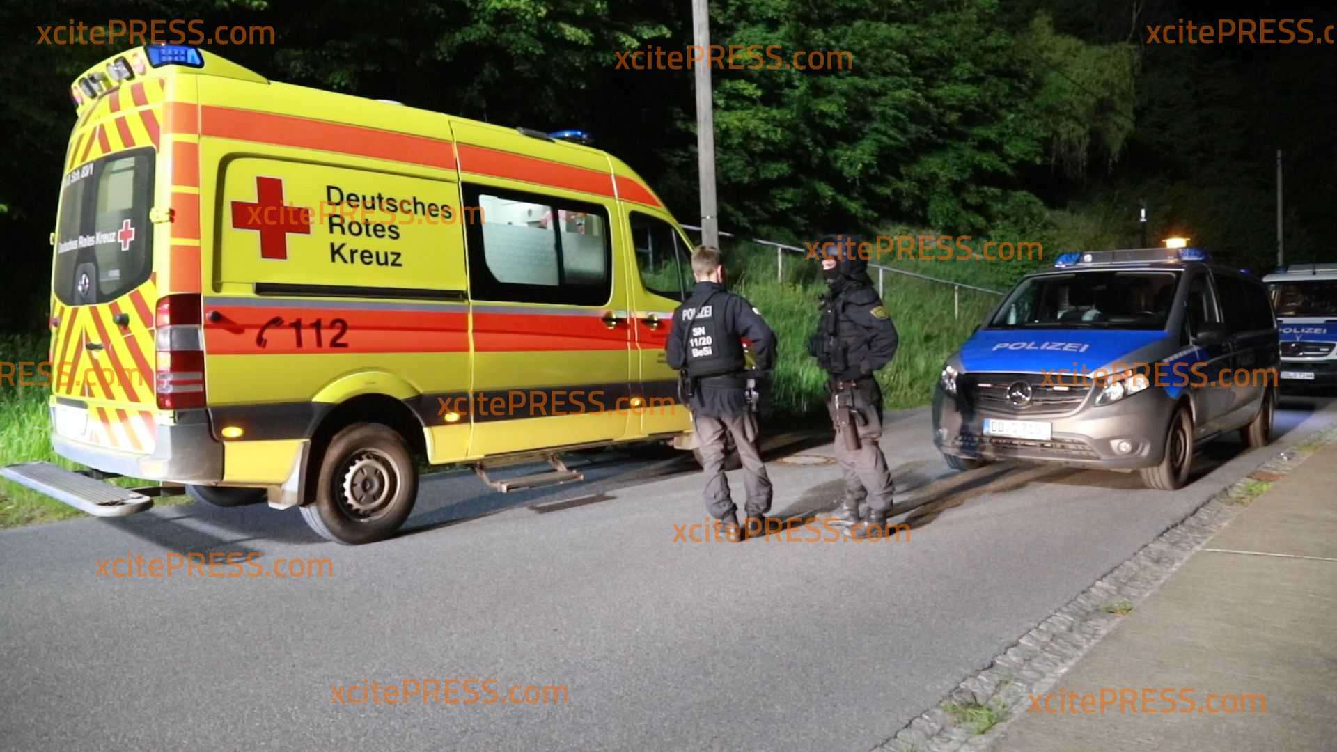 Nachdem bei einer Absuche des näheren Umfeldes etwa zehn Tatverdächtige festgestellt wurden, durchsuchten die Einsatzkräfte in Abstimmung mit der Staatsanwaltschaft Dresden die Liegenschaften der beiden Grundstücke.