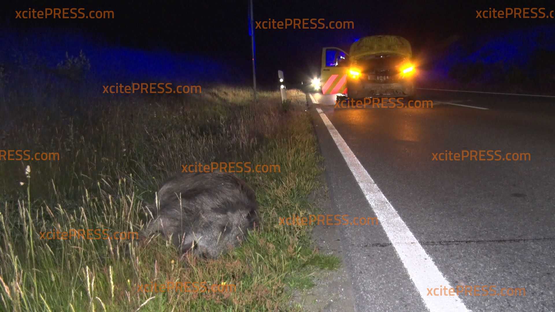 Einsatzfahrzeug kracht mit Wildschwein zusammen