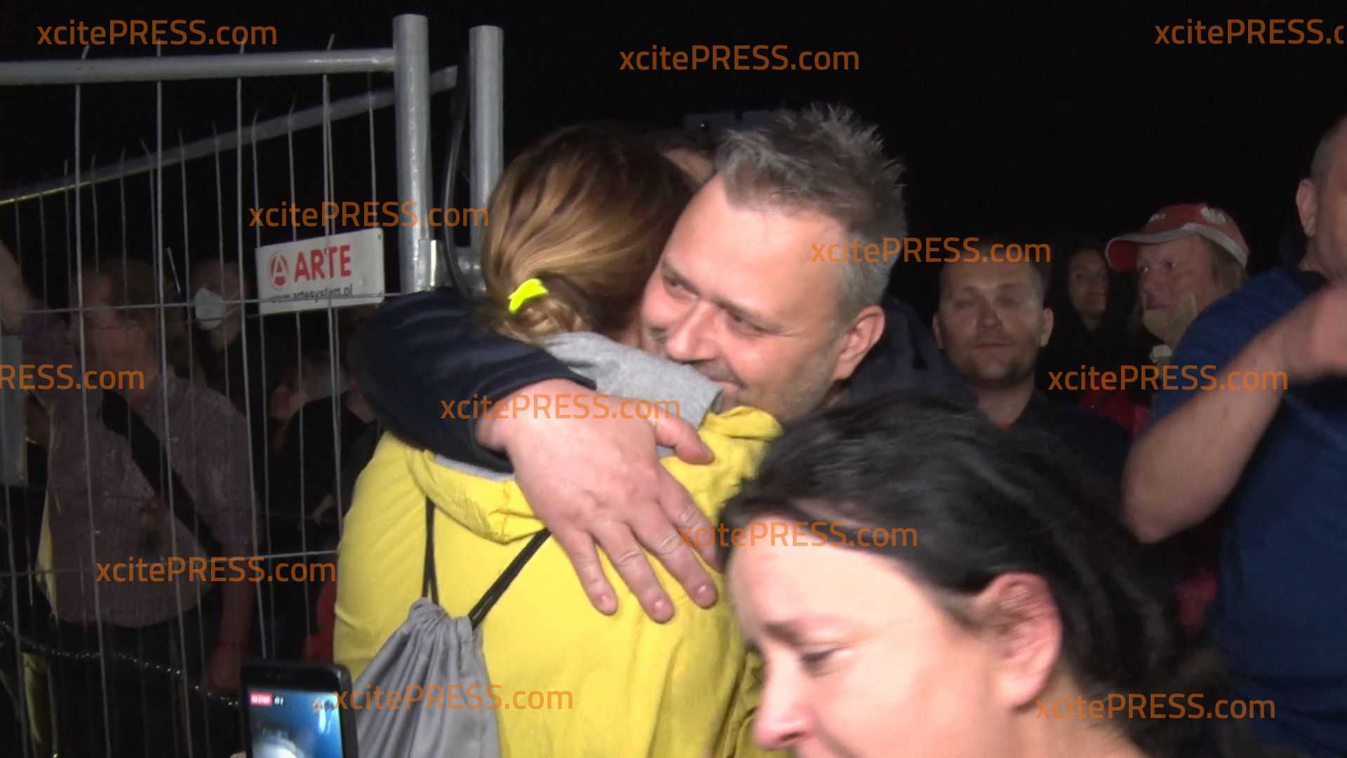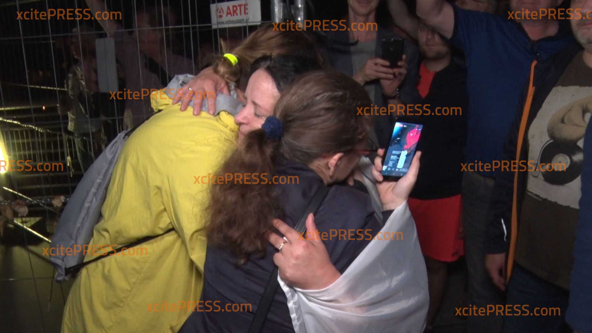 Menschen von beiden Seiten der Neiße jubeln und freuten - und auch der Gedanke an Abstand kann die Freude nicht halten - es wird sich umarmt - man bricht in Tränen aus.