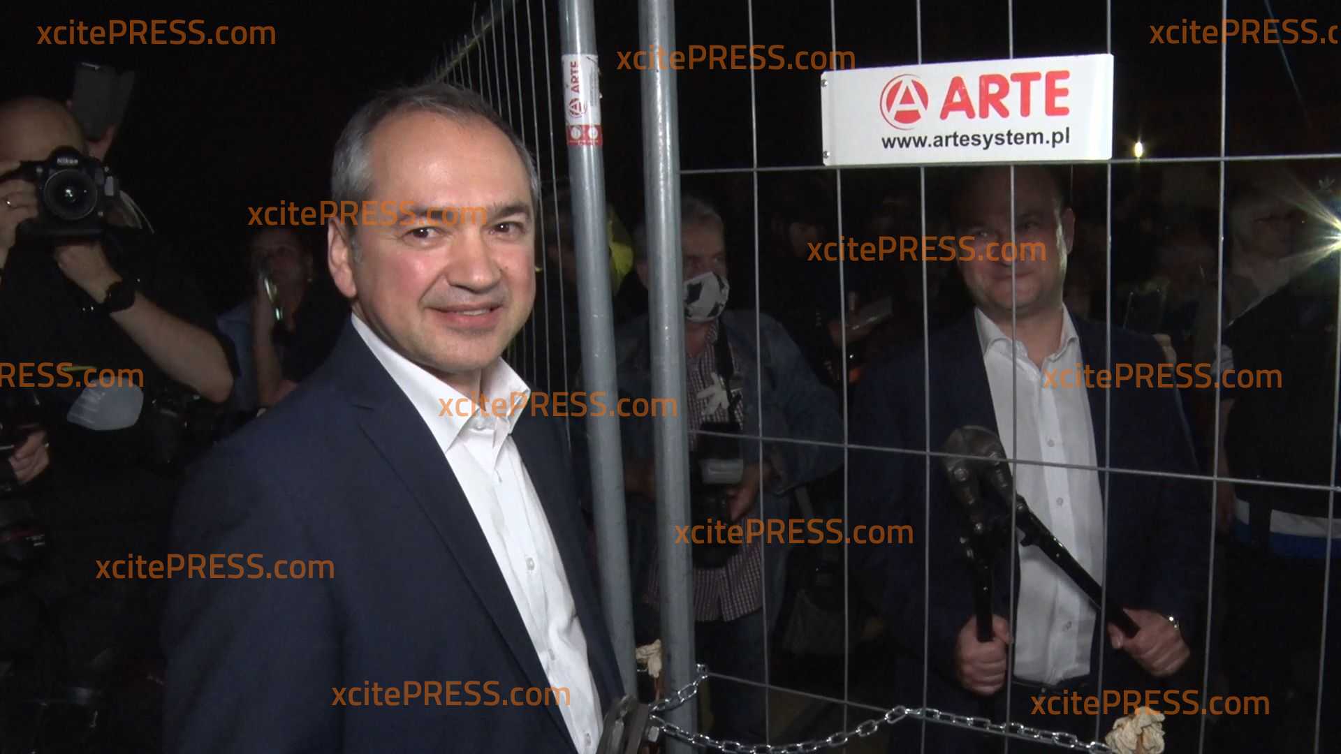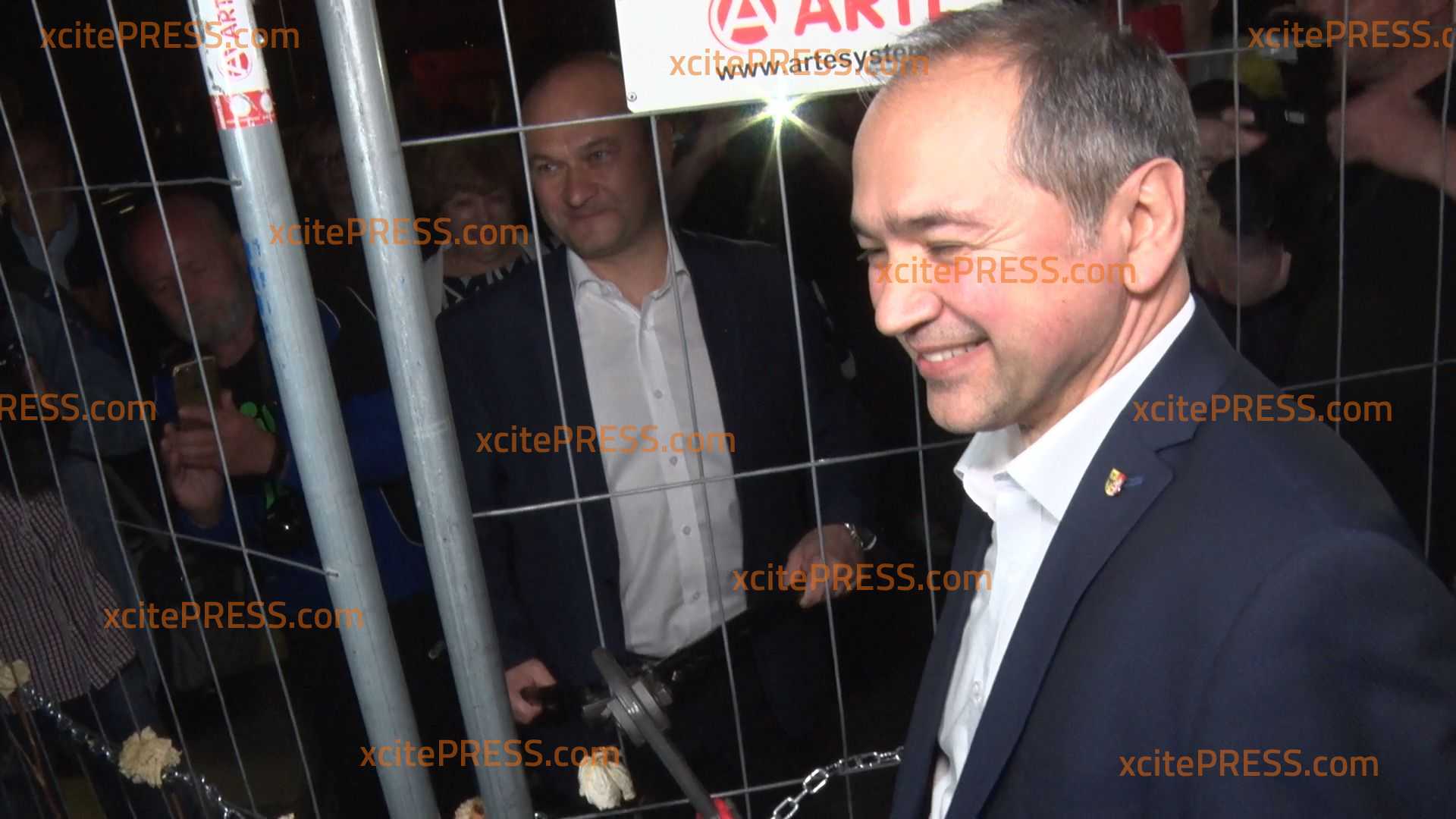- Bürgermeister durchtrennen Zaun mit Bolzenschneider