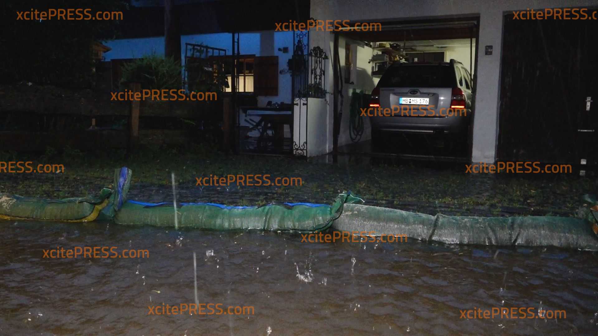 In der Nacht zum Dienstag regnete es im Süden Bayerns nahezu ununterbrochen. Reihenweise laufen in Waakirchen im Landkreis Miesbach die Keller voll - viel mehr Wasser läuft auf die Grundstücke, als man aufhalten kann. Und dennoch: Feuerwehr und Anwohner versuchen das Wasser, welches nicht mehr durch den Boden versickern und durch kleinere Flüsse aufgenommen werden kann mit Sandsäcken zurückzuhalten. Hand-in-Hand arbeitet man mit allen Mitteln, um Hab und Gut zu schützen. Eine Anwohnerin berichtet, wie das Wasser haltlos an das Grundstück strömt.