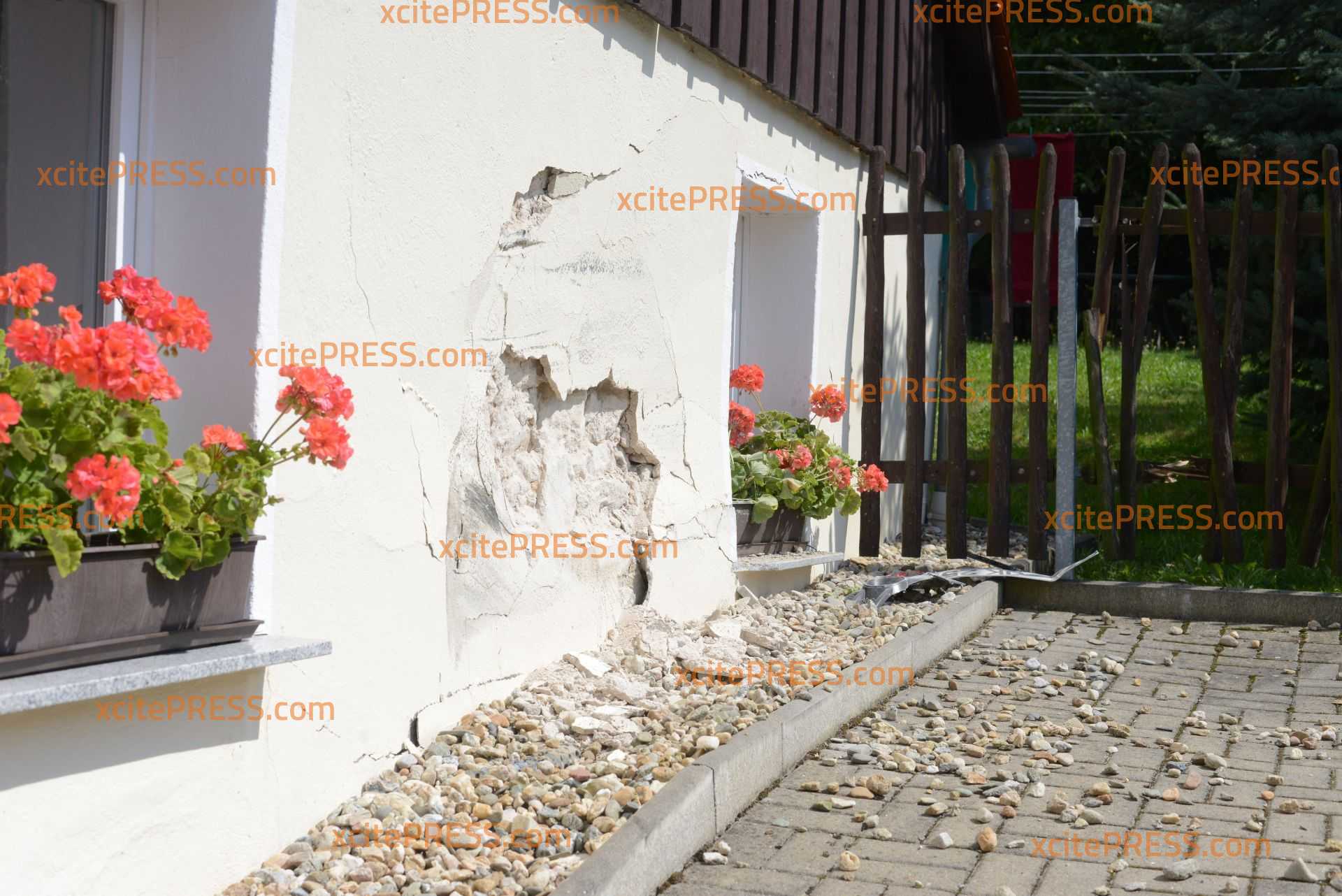 Zu einem Unfall kam es am Dienstagnachmittag gegen 14.00 Uhr auf dem Wilhelm Fröhlich Weg in Bertsdorf-Hörnitz. Aus noch ungeklärter Ursache kam dort der Fahrer eines Audi Q3 von der Fahrbahn ab und krachte in eine Hauswand. In der dahinter befindlichen Ferienwohnung war zum Glück zu dem Zeitpunkt keine Person, denn die Wand wurde erheblich beschädigt - Ziegelsteine wurden in den Raum geschleudert. Der Fahrer des Q3 wurde in ein Krankenhaus gebracht.