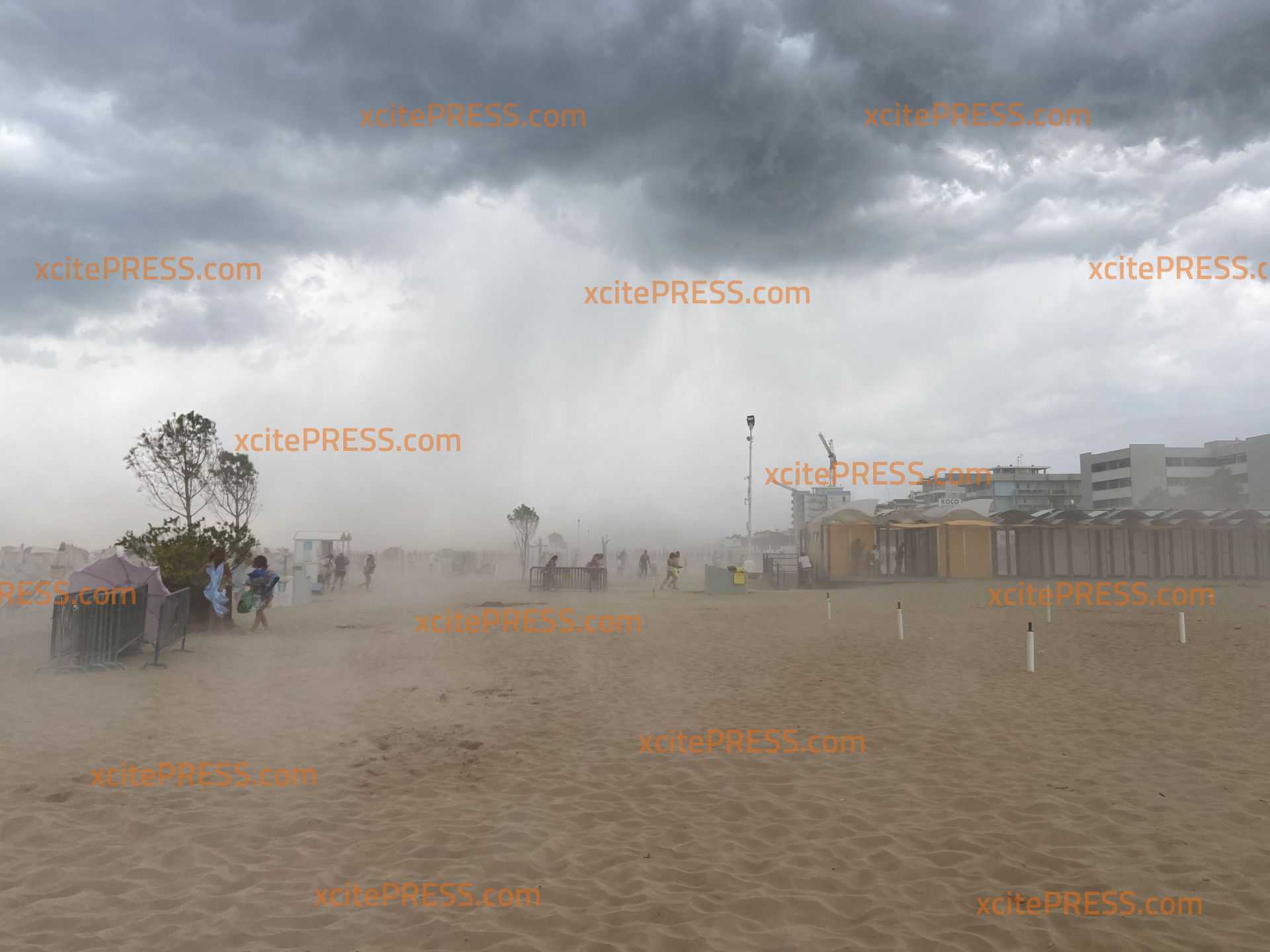 Urlauber flüchten an italienischem Stand vor kräftigem Gewitter