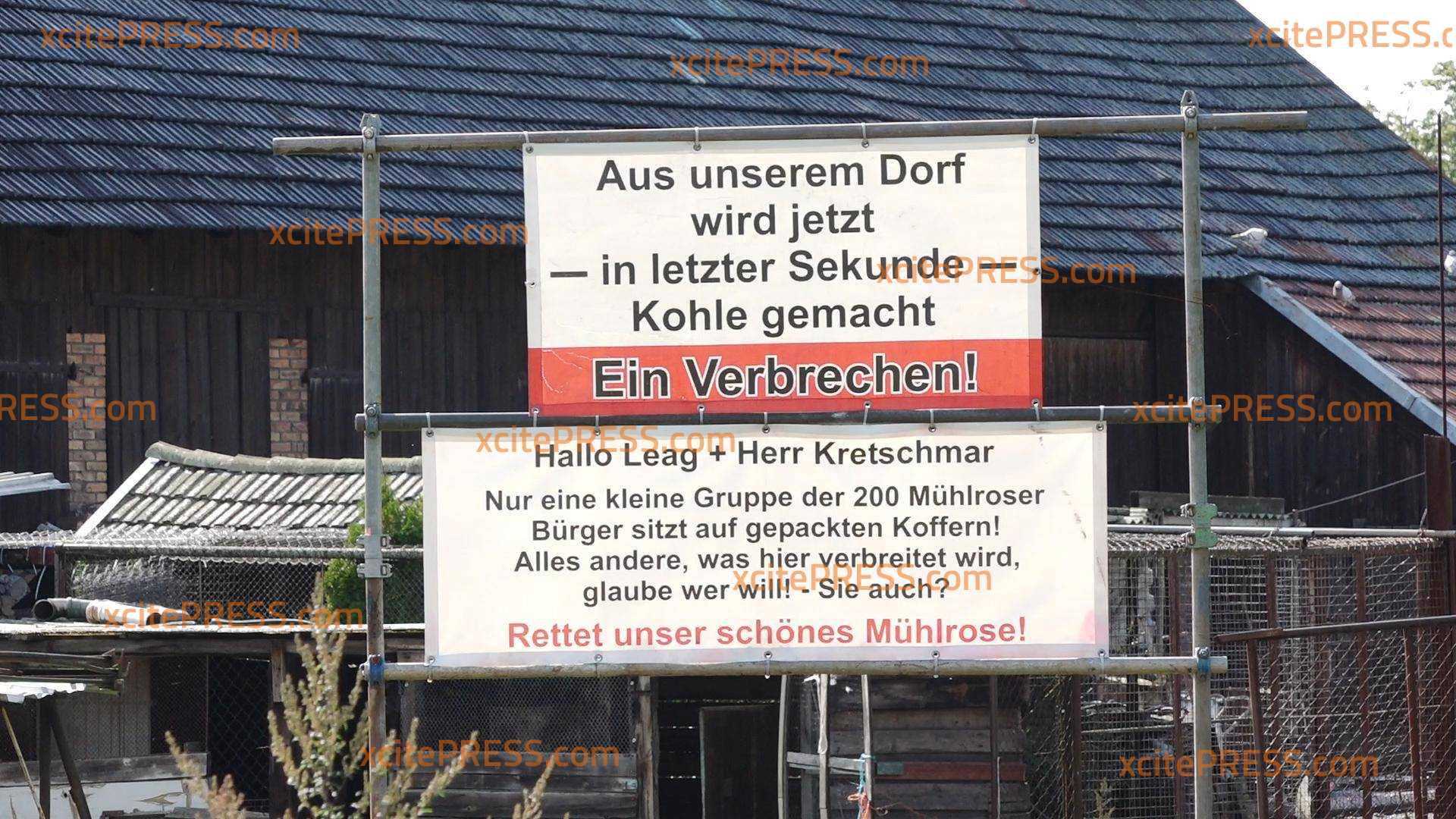 "Alle Dörfer bleiben" wirft der Leag vor, keine Rechtsgrundlage für die Inanspruchnahme des Dorfes zu haben. Braunkohlegegner und Einwohner von Mühlrose haben deswegen bereits am Sonntag gegen den Abriss von zwei Häusern mobil gemacht.