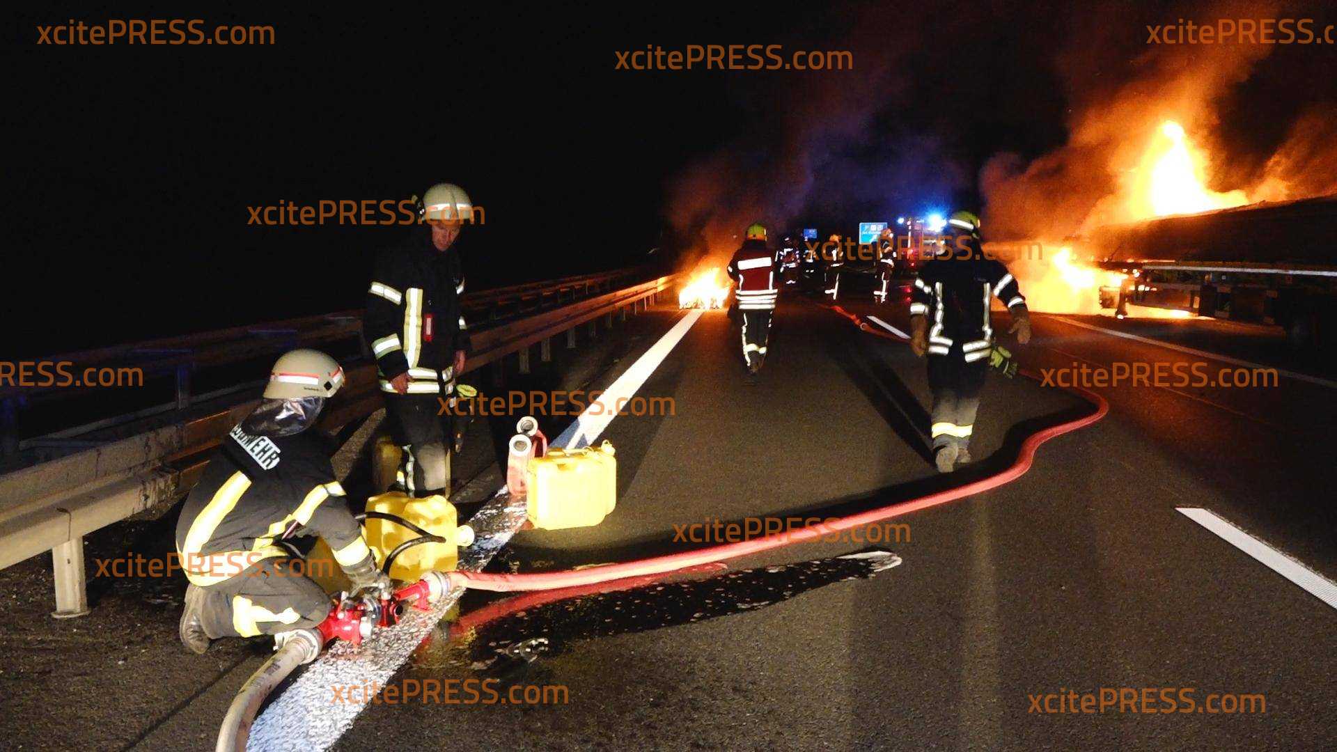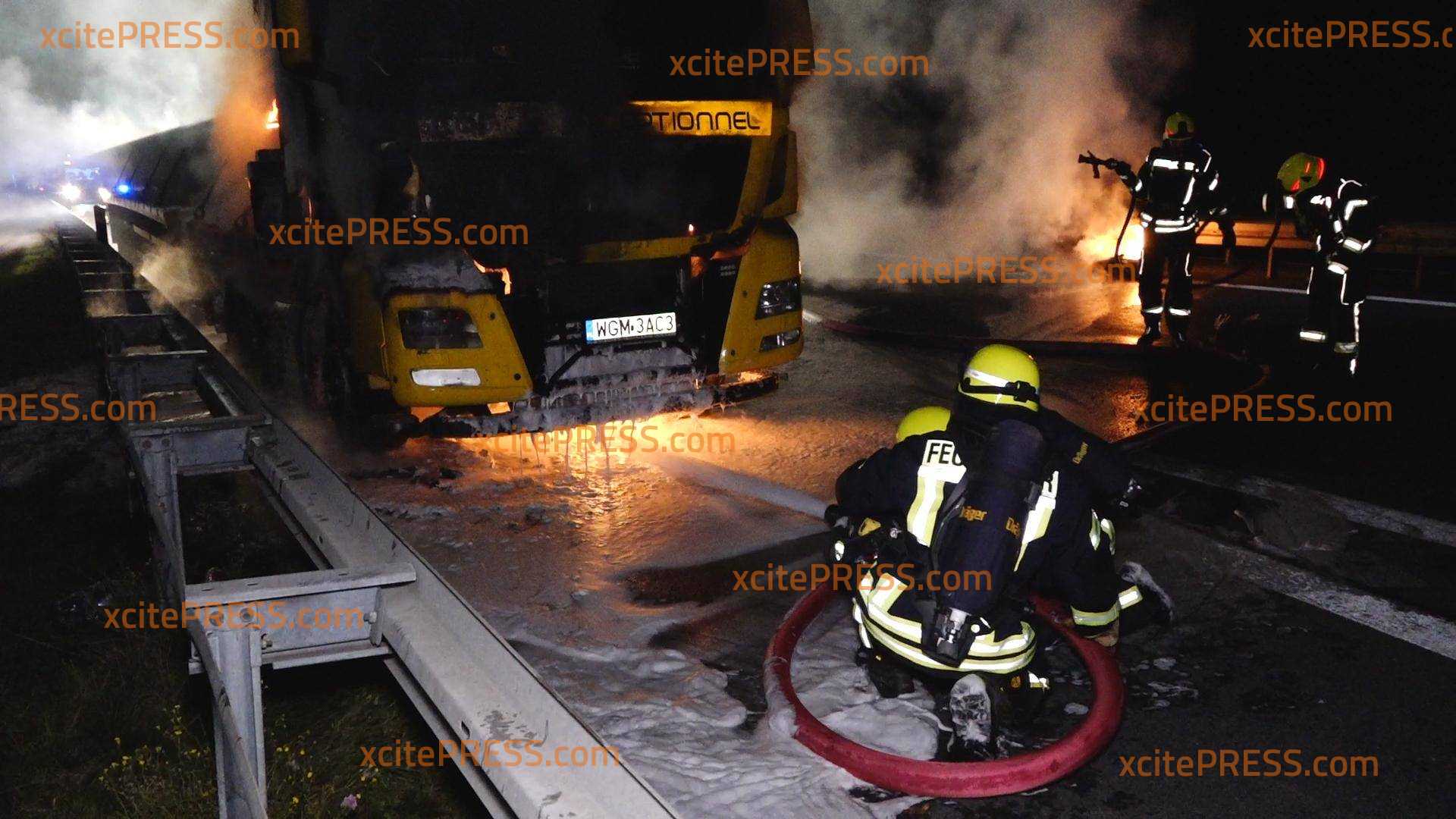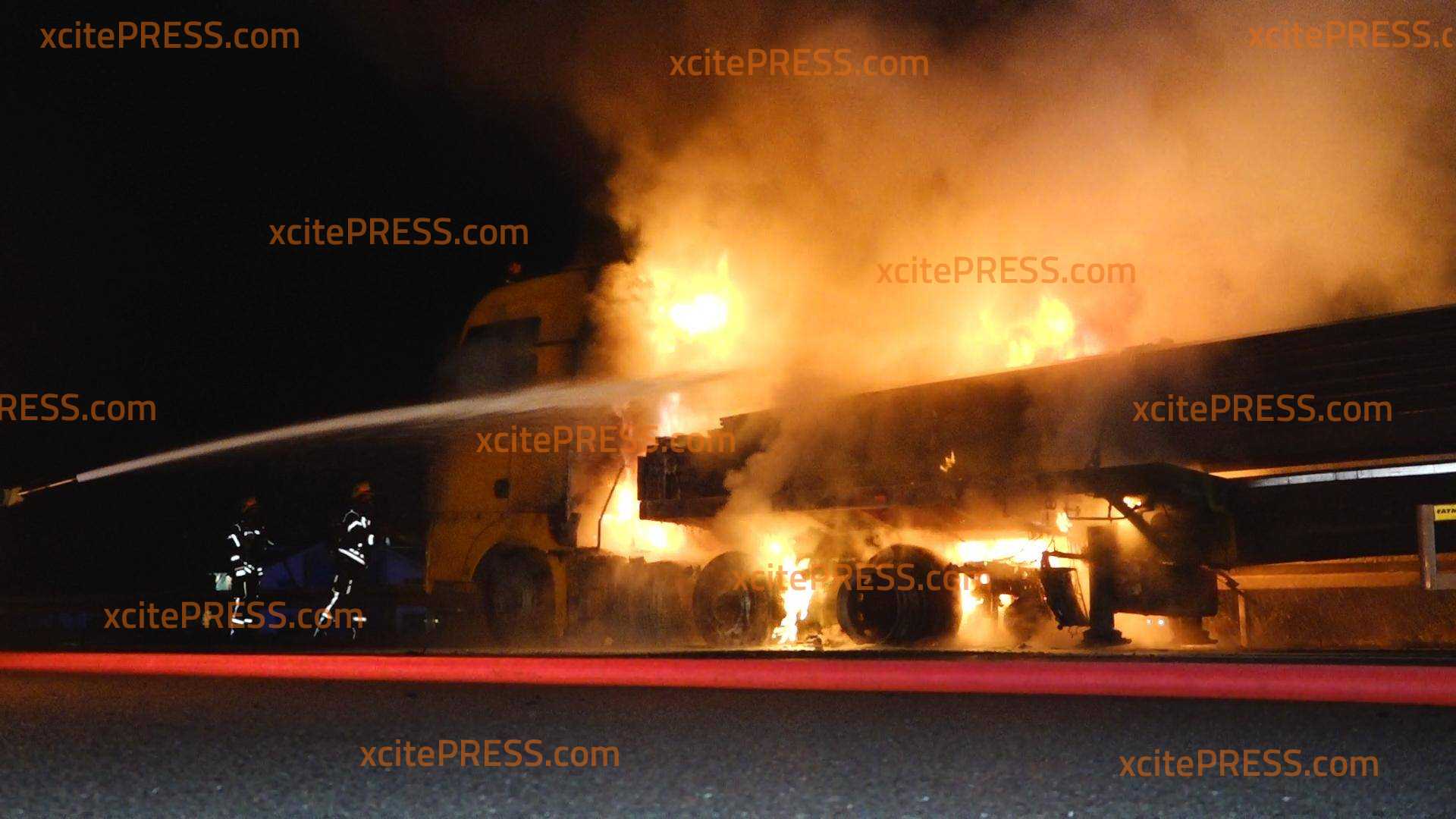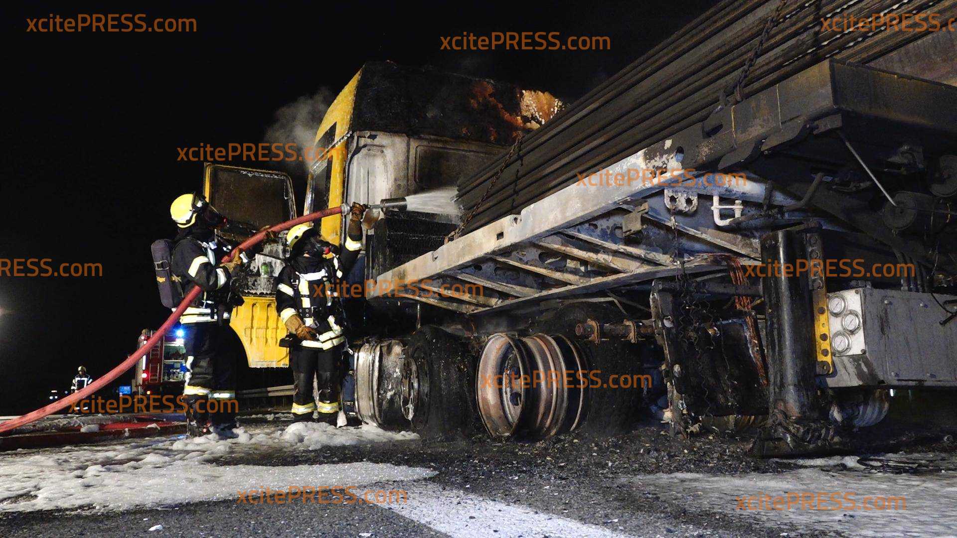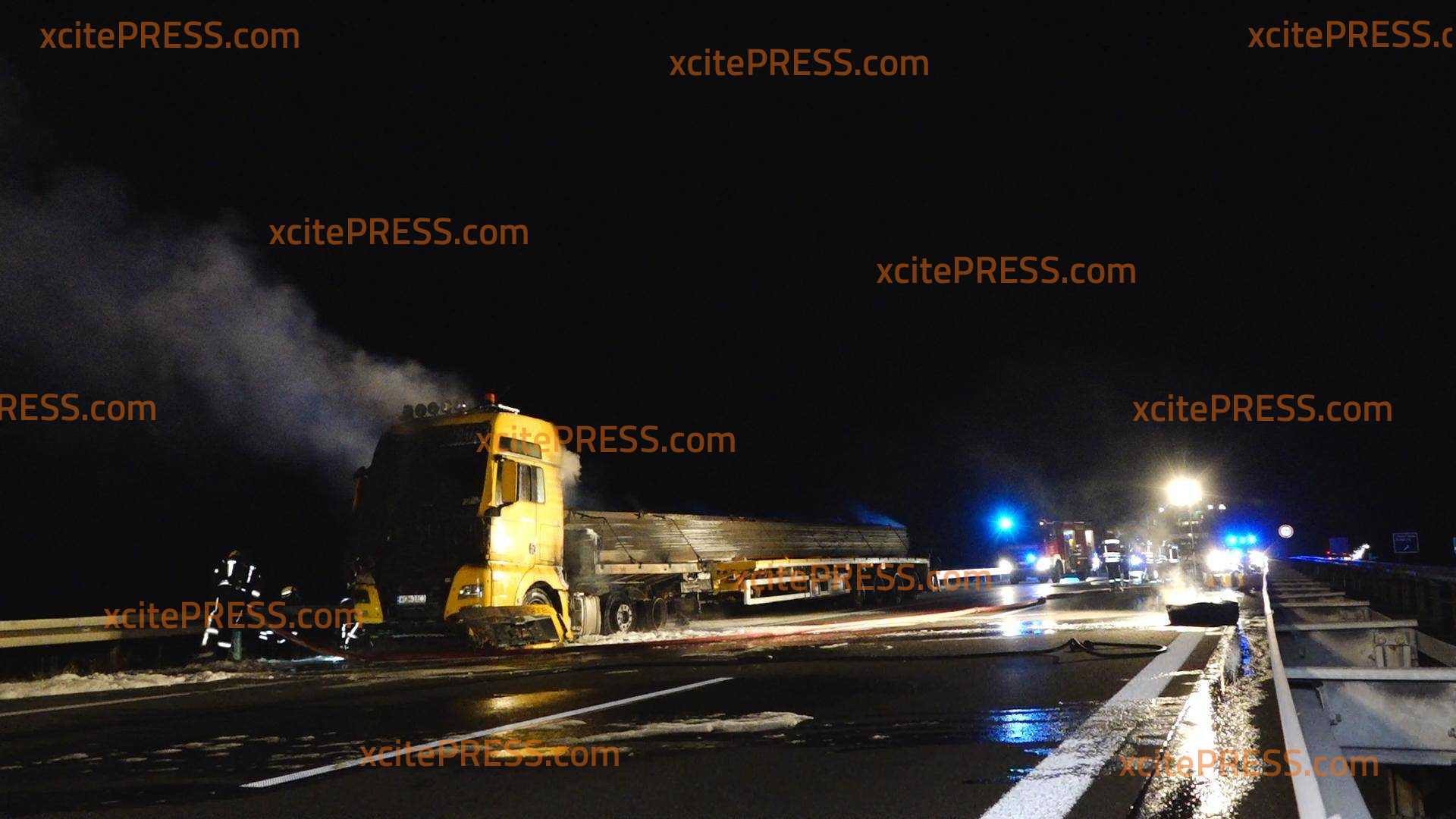 Ein brennender LKW beschäftigt Feuerwehr und Polizei aktuell auf der A4 bei Ottendorf-Okrilla. Um kurz nach 0:00 Uhr ging das 60 Tonnen schwere Gespann zwischen den Anschlussstellen Ottendorf-Okrilla und Hermsdorf in Fahrtrichtung Dresden in Flammen auf. Der Brand breitere sich rasend schnell aus, sodass die Zugmaschine nahezu in Vollbrand stand, als die Feuerwehr eintraf. Sofort versuchte man mit Wasser, kurz darauf auch mit Schaum zu löschen. Zuvor war noch ein Reifen durch die Hitze geplatzt und brennend einmal quer über die Richtungsfahrbahn geschleudert worden. Auch dieser brennende Reifen musste abgelöscht werden. Mittlerweile ist der Brand bekämpft. Jedoch muss ein Kran noch den Auflieger anheben, damit die Zugmaschine hervorgezogen und auf Glutnester kontrolliert werden kann. Auch die anschließende Bergung wird sich nicht gerade einfach gestalten. Bis der LKW abgeschleppt werden kann, müssen die randvollen und schwer beschädigten Diesel-Tanks abgepumpt werden. Es ist damit zu rechnen, dass es im Berufsverkehr zu Behinderungen kommen wird.