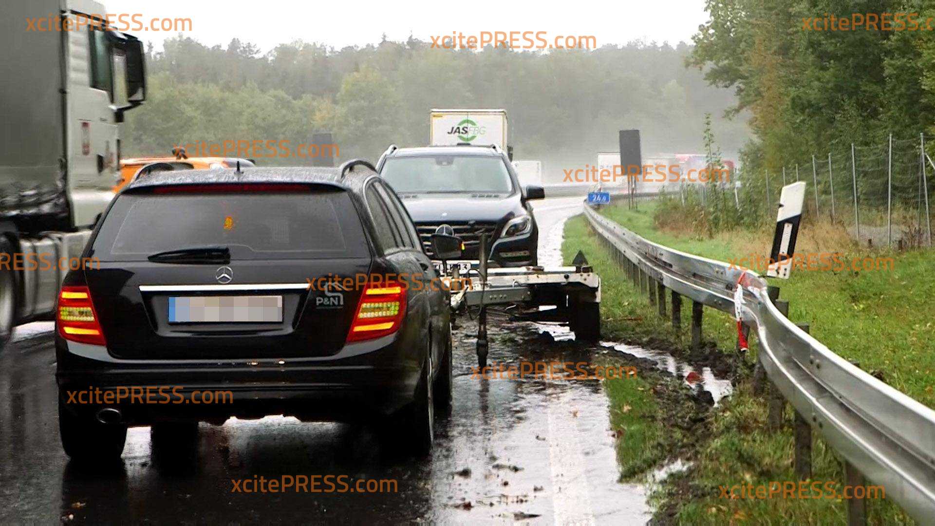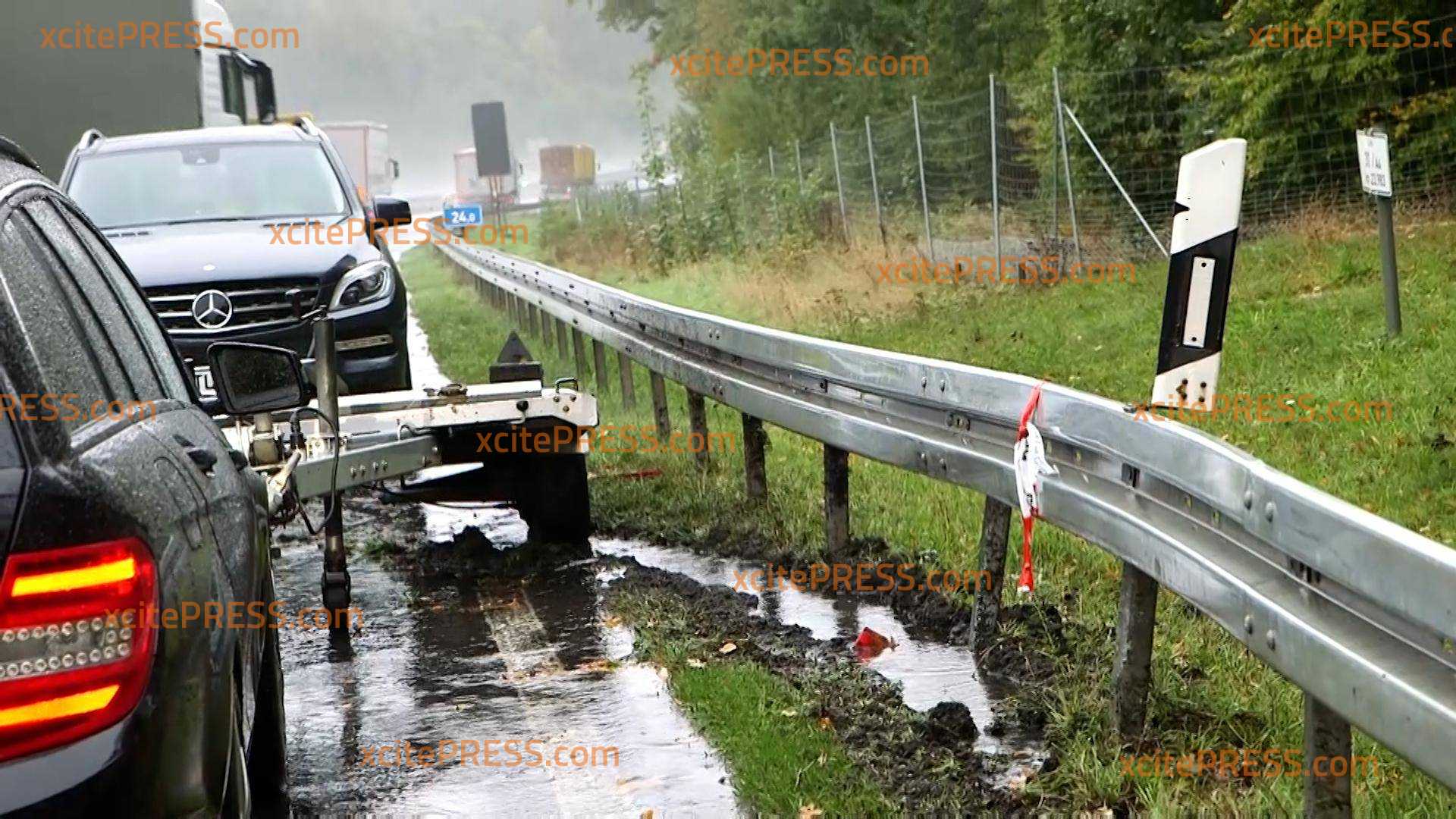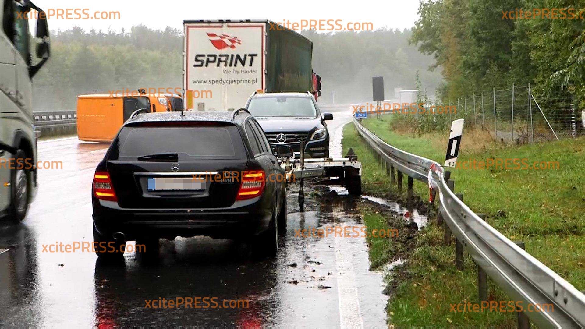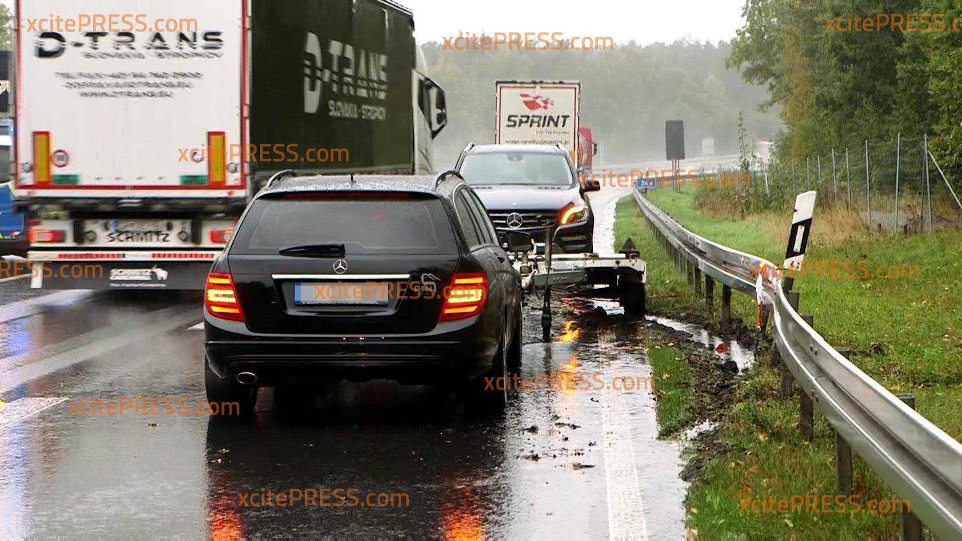 Crash im Regen: PKW mit Anhänger gerät ins Schleudern