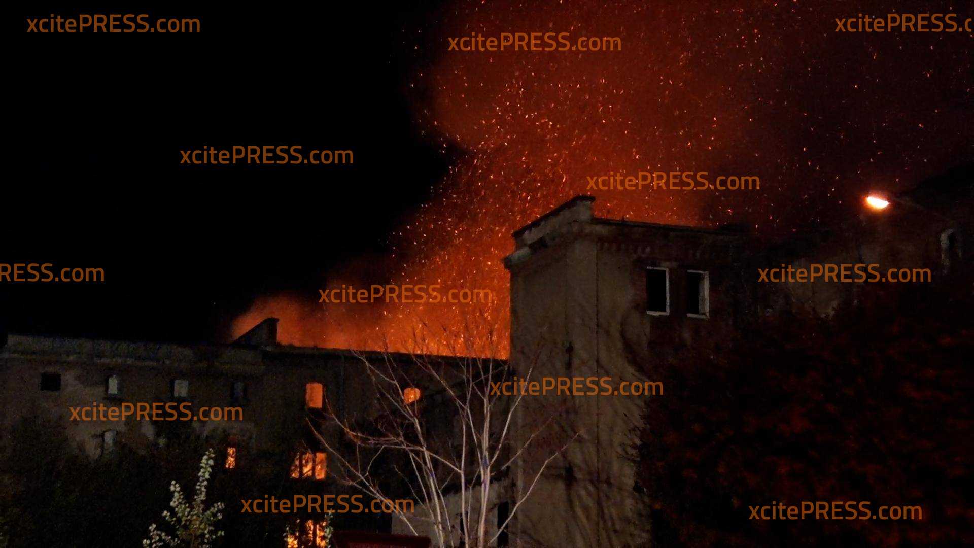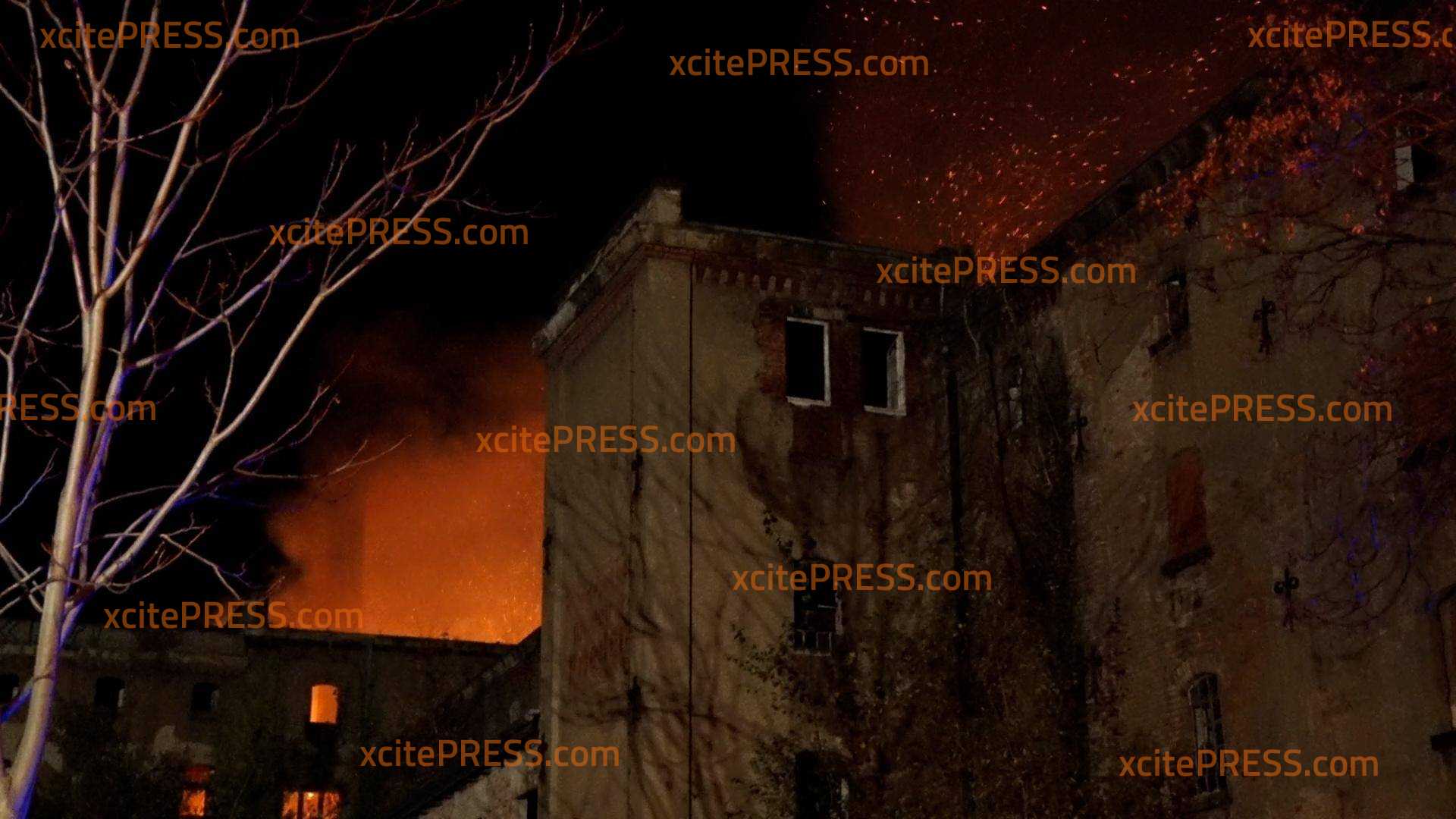 Alte Malzfabrik in Flammen