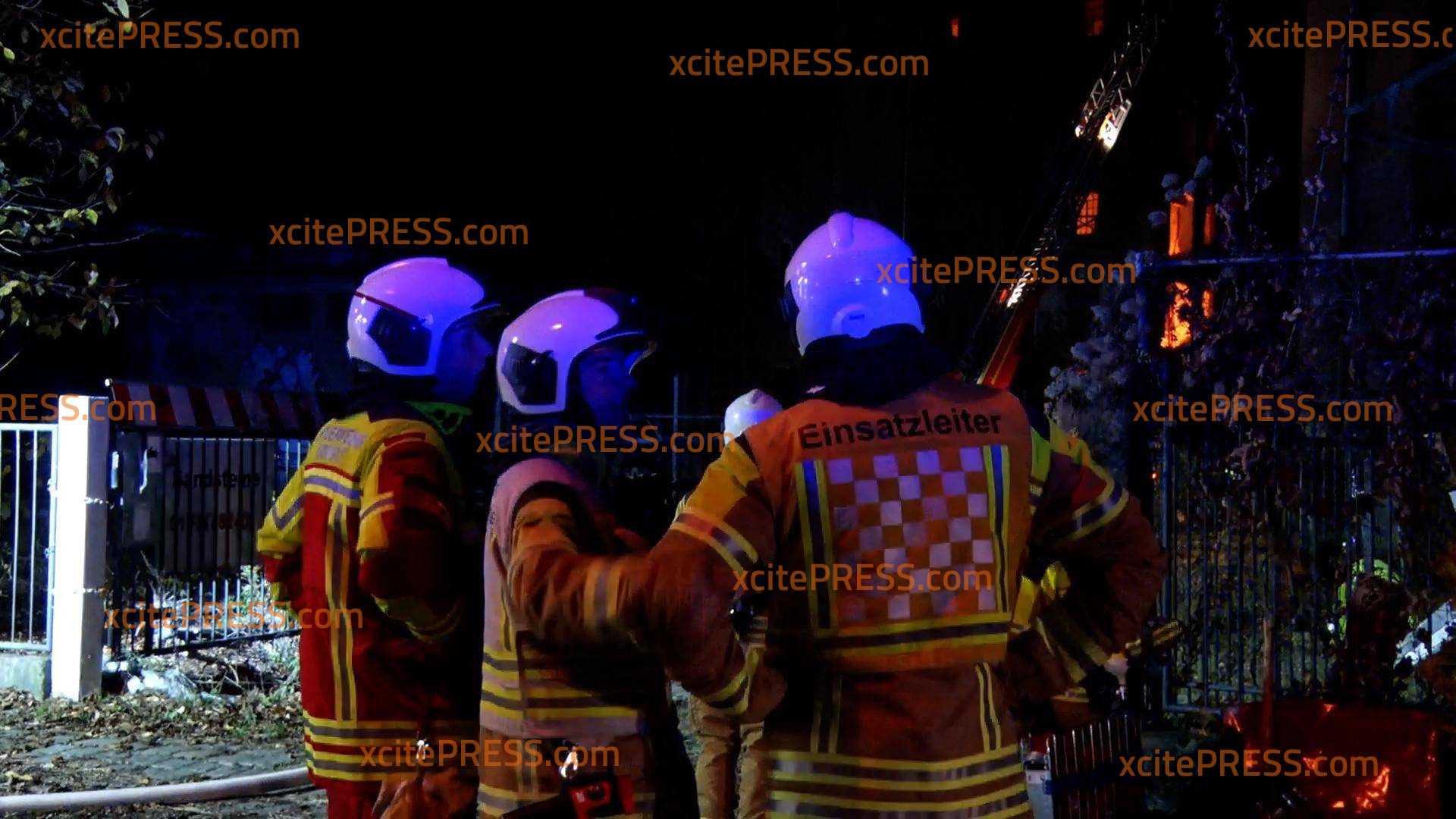 Zunächst wurde mit zwei Drehleitern versucht, dass Feuer von oben unter Kontrolle zu bringen. Bis zum Schluss waren insgesamt 4 Drehleitern im Einsatz.