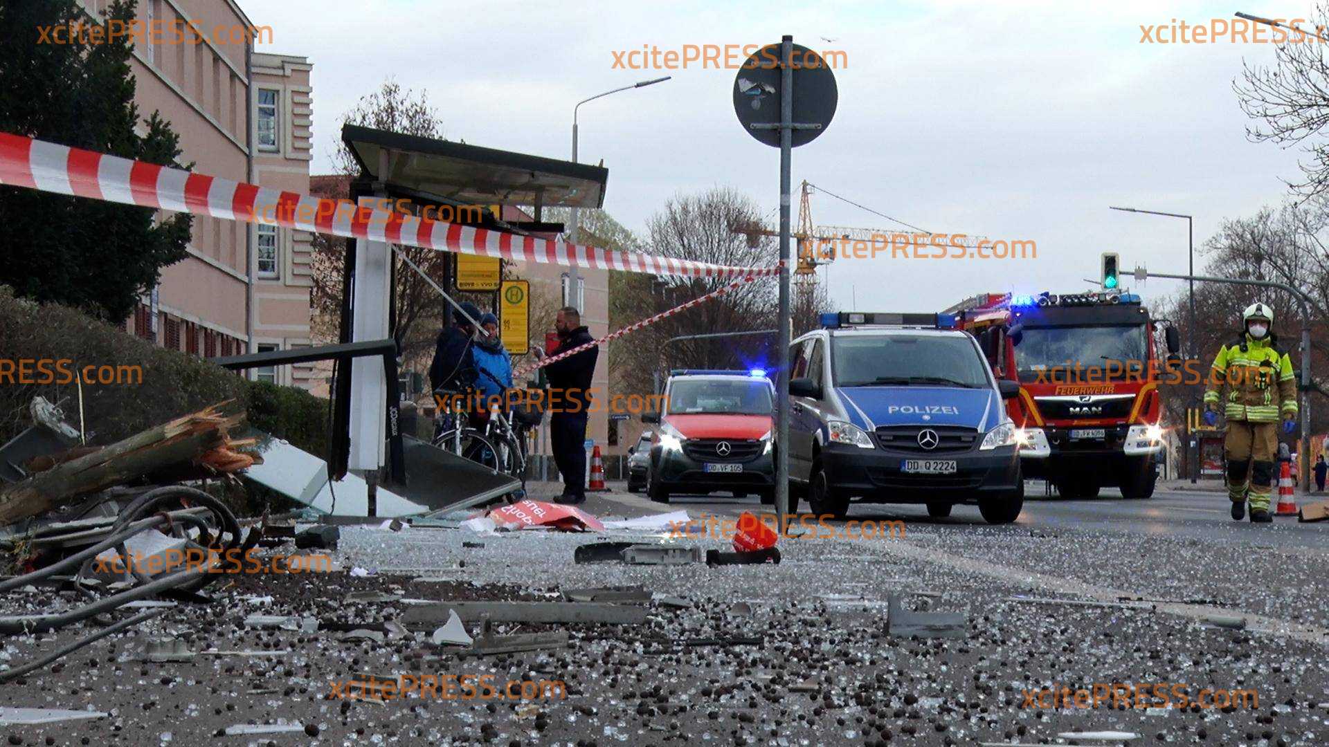 Zu einem Unfall kam es am Samstagmittag gegen 12.45 Uhr in Dresden. An der Teplitzer Straße kam der Fahrer eines Mercedes S320 aus noch ungeklärter Ursache nach rechts von der Fahrbahn ab, krachte in eine Haltestelle, fuhr einen Stromkasten um und kam schließlich vor einem Mehrfamilienhaus zum Stehen. Eine Frau (26) und ein Mann (35), welche an der Haltestelle standen konnten sich in letzter Sekunde offenbar zur Seite retten, wurden dennoch mit einem Rettungswagen in ein Krankenhaus mitgenommen. Auch der Fahrer (49) des PKW - welcher offenbar aus gesundheitlichen Gründen von der Fahrbahn abkam, wurde in eine Klinik verbracht. Der entstandene Sachschaden beläuft sich auf rund 30.000 Euro.