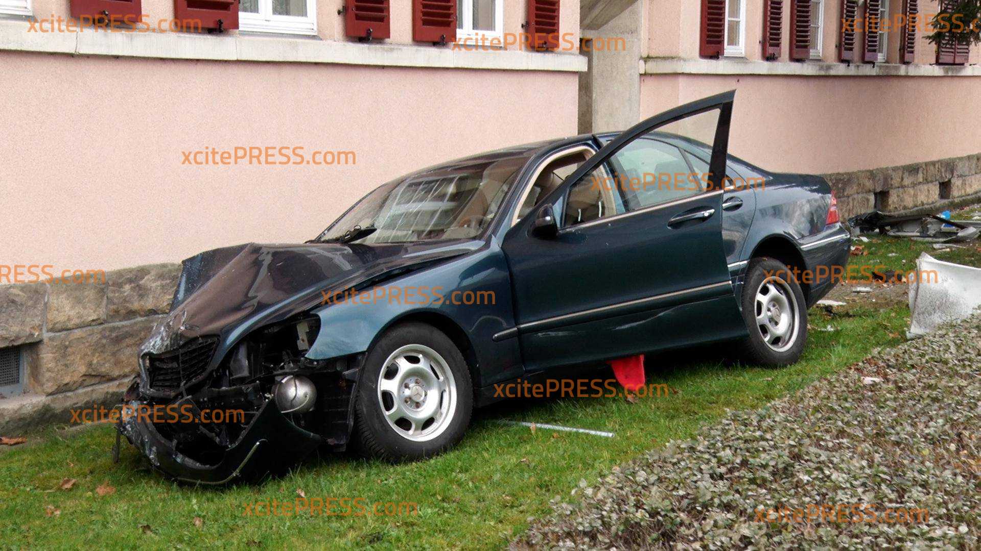 PKW-Fahrer (49) kracht in Haltestelle kommt bei Mehrfamilienhaus zum Stehen
