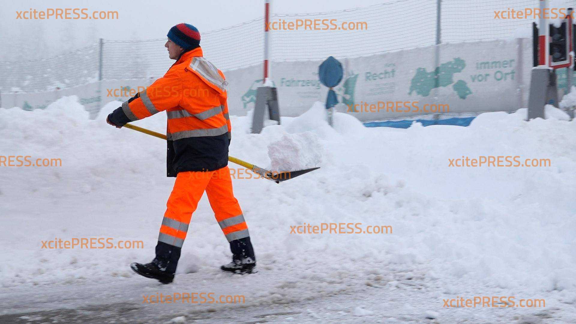 - Arbeiter mit Schneeschippe