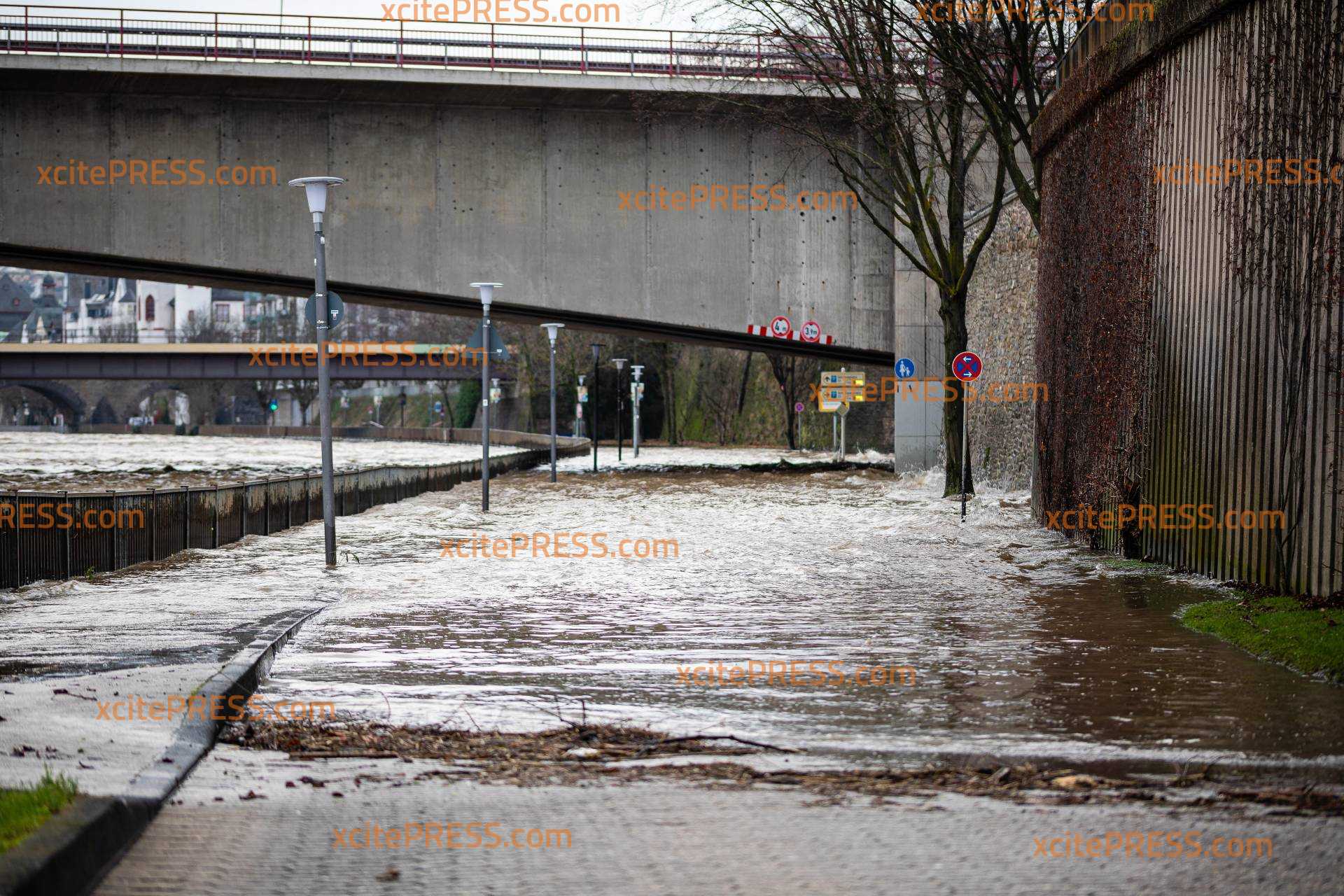 Die Lage in Koblenz wird immer dramatischer. Der Pegel von Rhein und Mosel steigt unaufhaltsam und sorgt dafür, dass immer mehr Gebiete in Ufernähe überflutet werden. Besonders betroffen ist ein Freizeit- und Campingplatz im Ortsteil Neuendorf. Auch eine Bundesstraße im Ortsteil Gülle musste gesperrt werden. Im Stadtteil Winningen drückt das Wasser bereits aus der Kanalisation an die Oberfläche und überflutet Parkplätze und Straßen. Der Schiffsverkehr ist teilweise eingestellt worden. Die Feuerwehr bereitet aktuell in mehreren Stadtteilen einen Stegebau vor, damit Anwohner trotz drohender Überflutung in ihre Häuser kommen. Man rechnet damit, dass noch heute die Hochwasserwarnstufe 2 erreicht wird. Rettungskräfte haben eine Technische Einsatzleitung und mehrere Einsatzabschnitte gebildet und sind in Alarmbereitschaft. Auch die Koblenzer Altstadt ist betroffen, hier stehen viele Fuß- und Radwege, sowie Uferstraßen bereits unter Wasser.