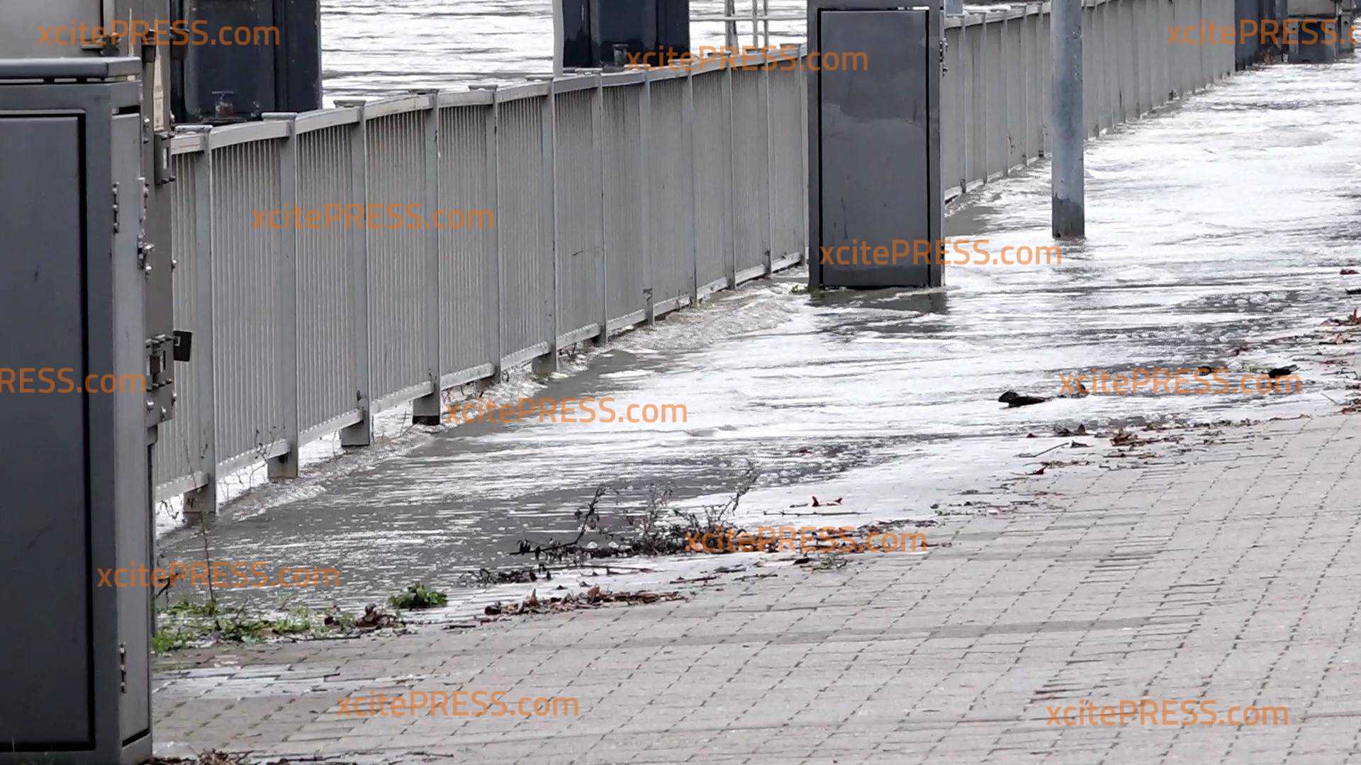 Erste Fußgängerzonen und Radwege in Ufernähe sind bereits überflutet, einige Straßen gesperrt. Der Pegel hat heute die sechs Meter überschritten und steht damit kurz vor der zweithöchsten Hochwasserstufe 2, welche bei 6,50m erreicht wird. Man geht davon aus, dass diese Stufe heute noch erreicht wird. Morgen soll dann die sieben Meter Marke fallen.