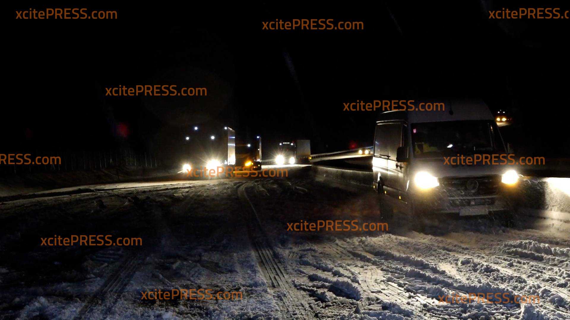"Flockdown" bringt schneeglatte Straßen und legt mehrere LKW auf der Autobahn 7 lahm