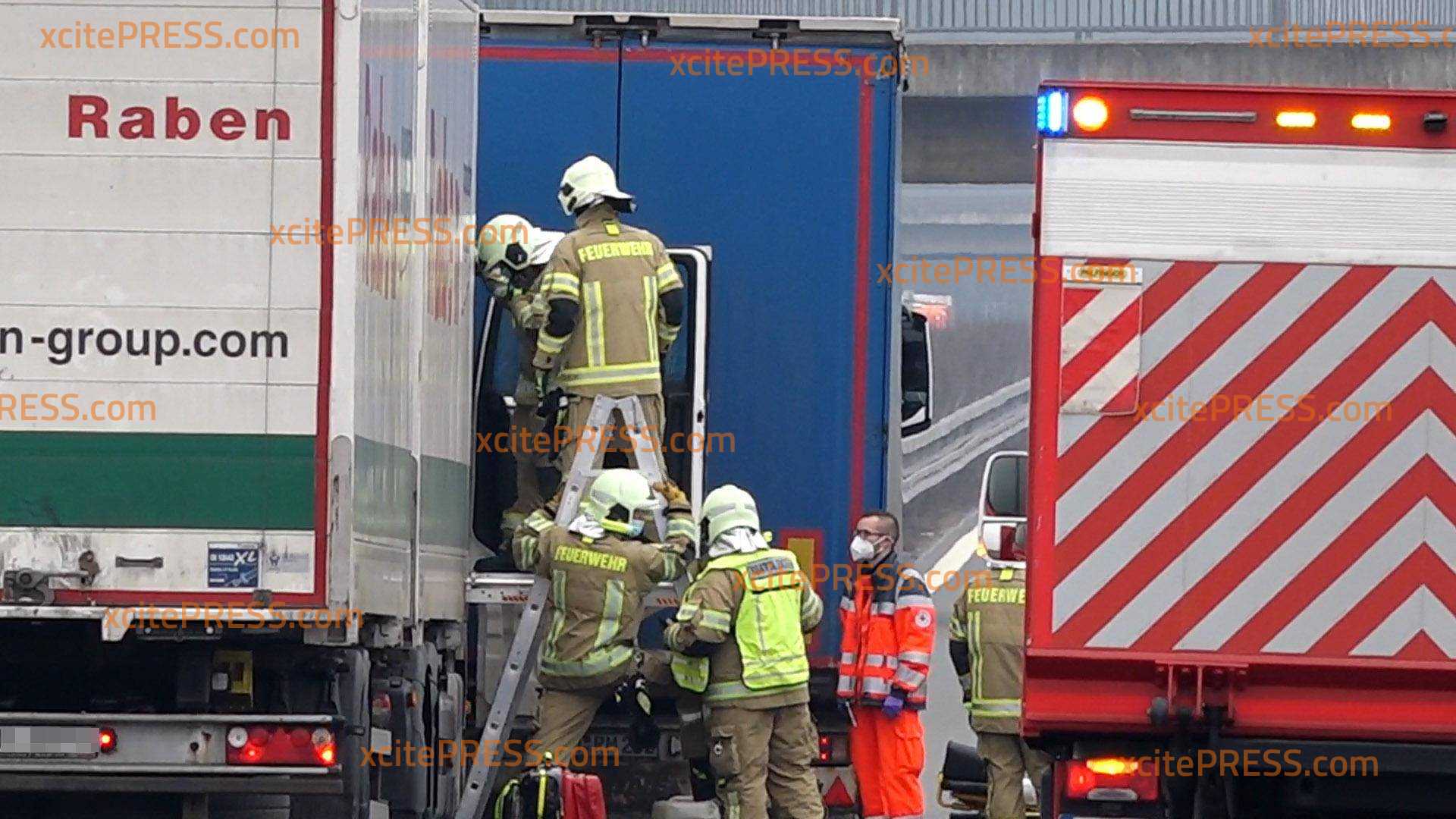 Alarmierte Einsatzkräfte retteten schließlich den Fahrer aus seiner Kabine. Dieser war zeitweise bewusstlos, er wurde in einem kritischen Gesundheitszustand in ein Krankenhaus gebracht.