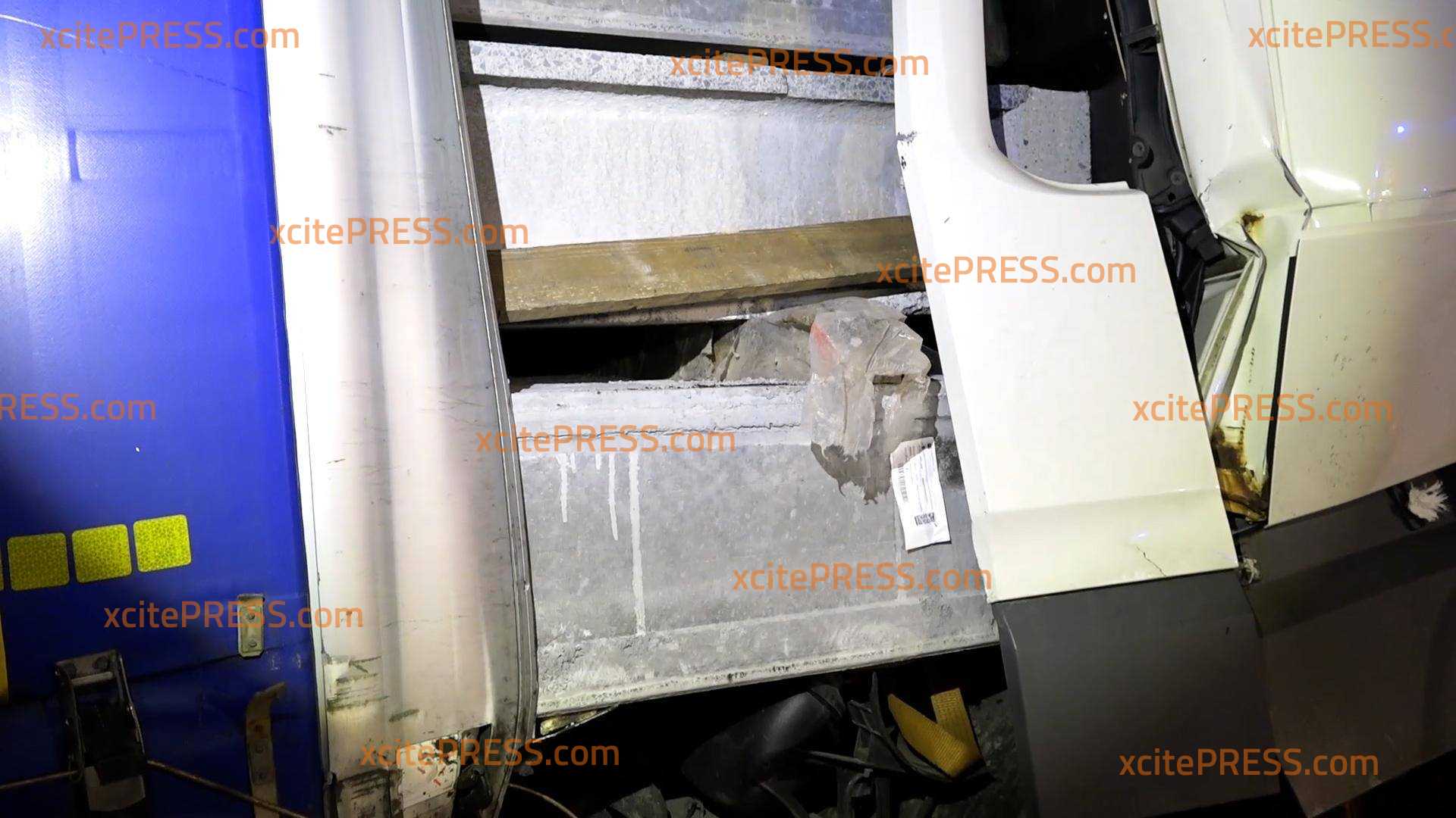 Bei Unfall mit LKW: Betonteile zerdrücken Führerhaus beinahe