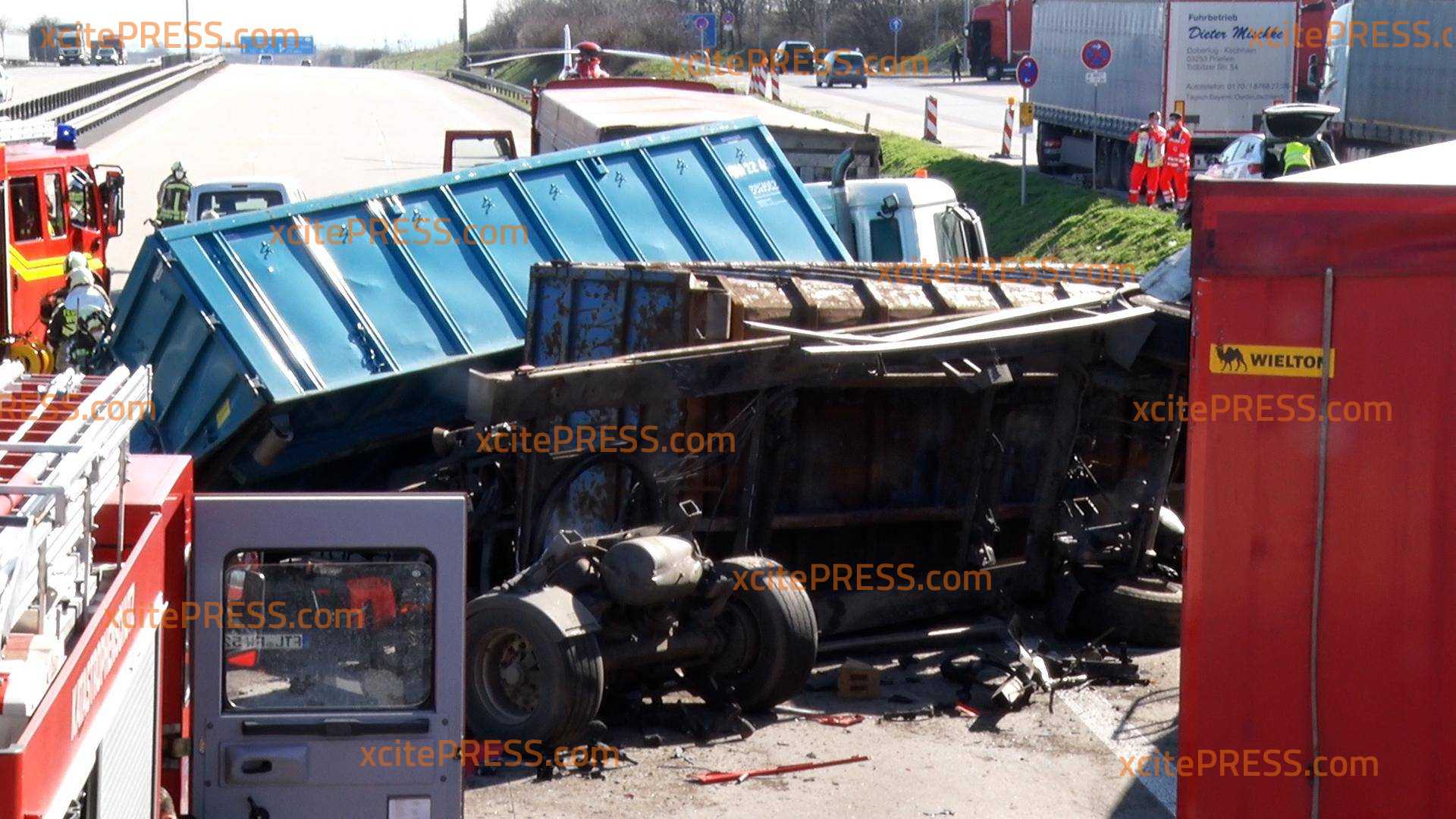 Trümmerfeld auf der A4 - Drei LKW krachen ineinander