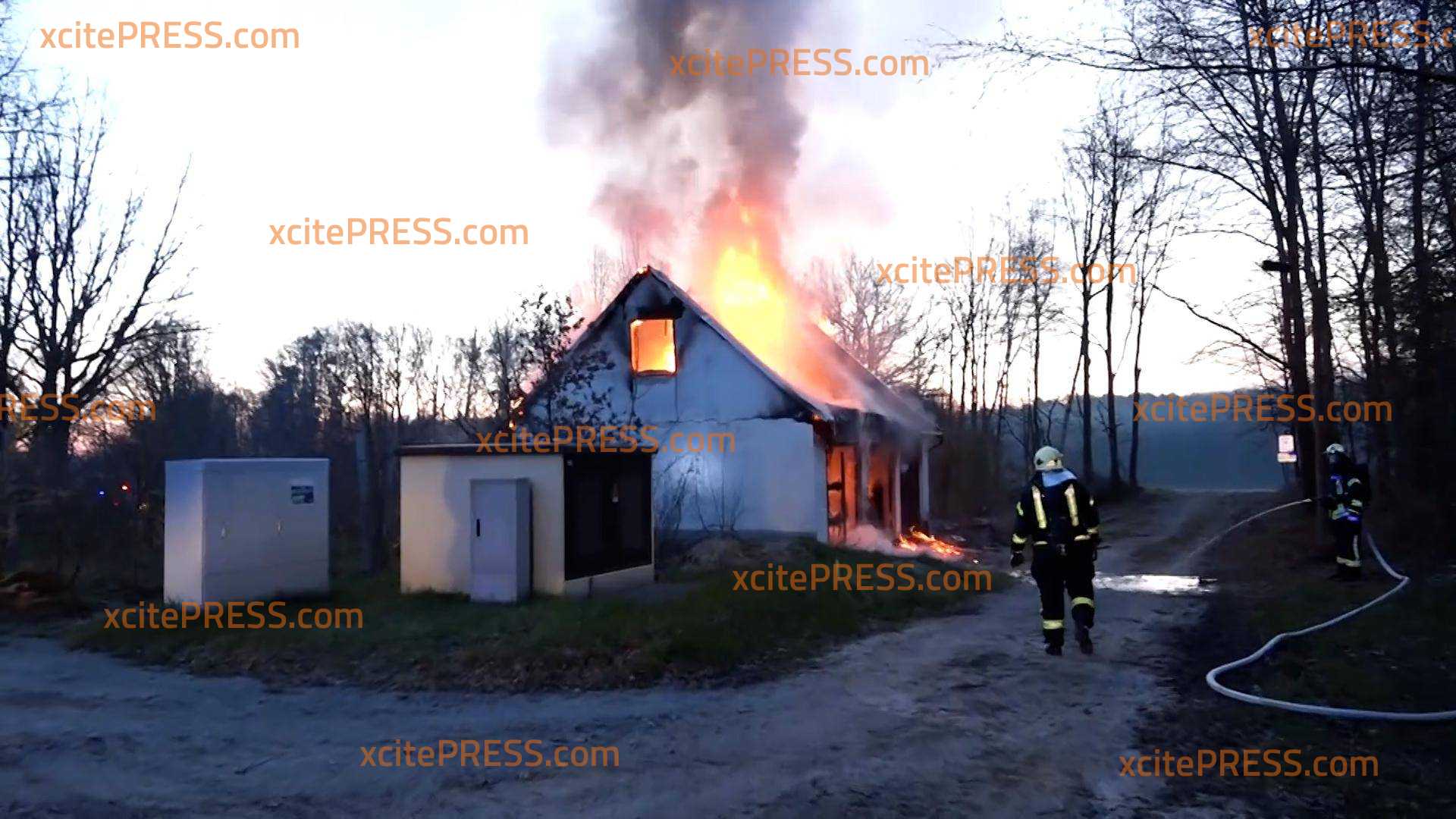 Gebäude brennt bei Bischofswerda lichterloh