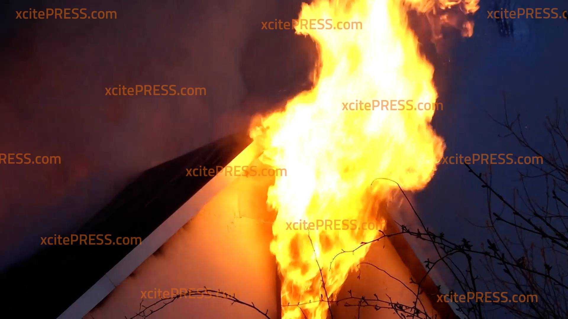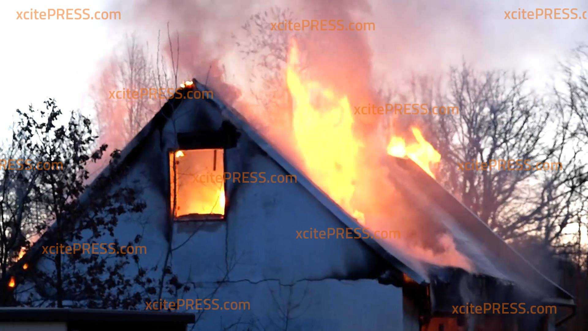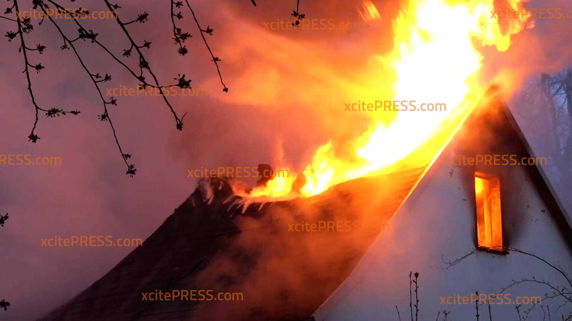 - Flammen schlagen aus Fenster und Dach