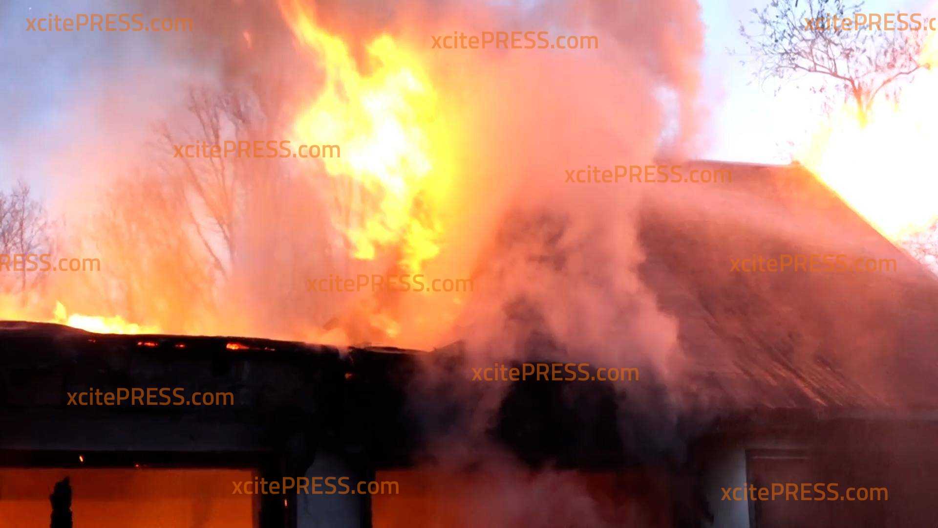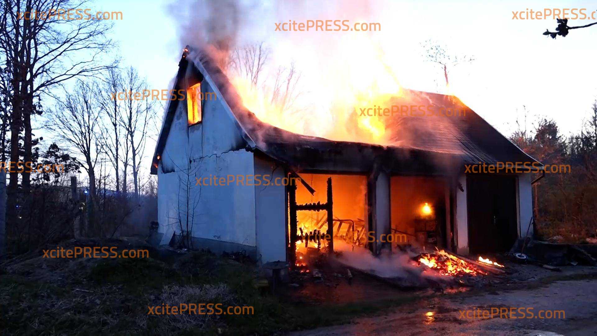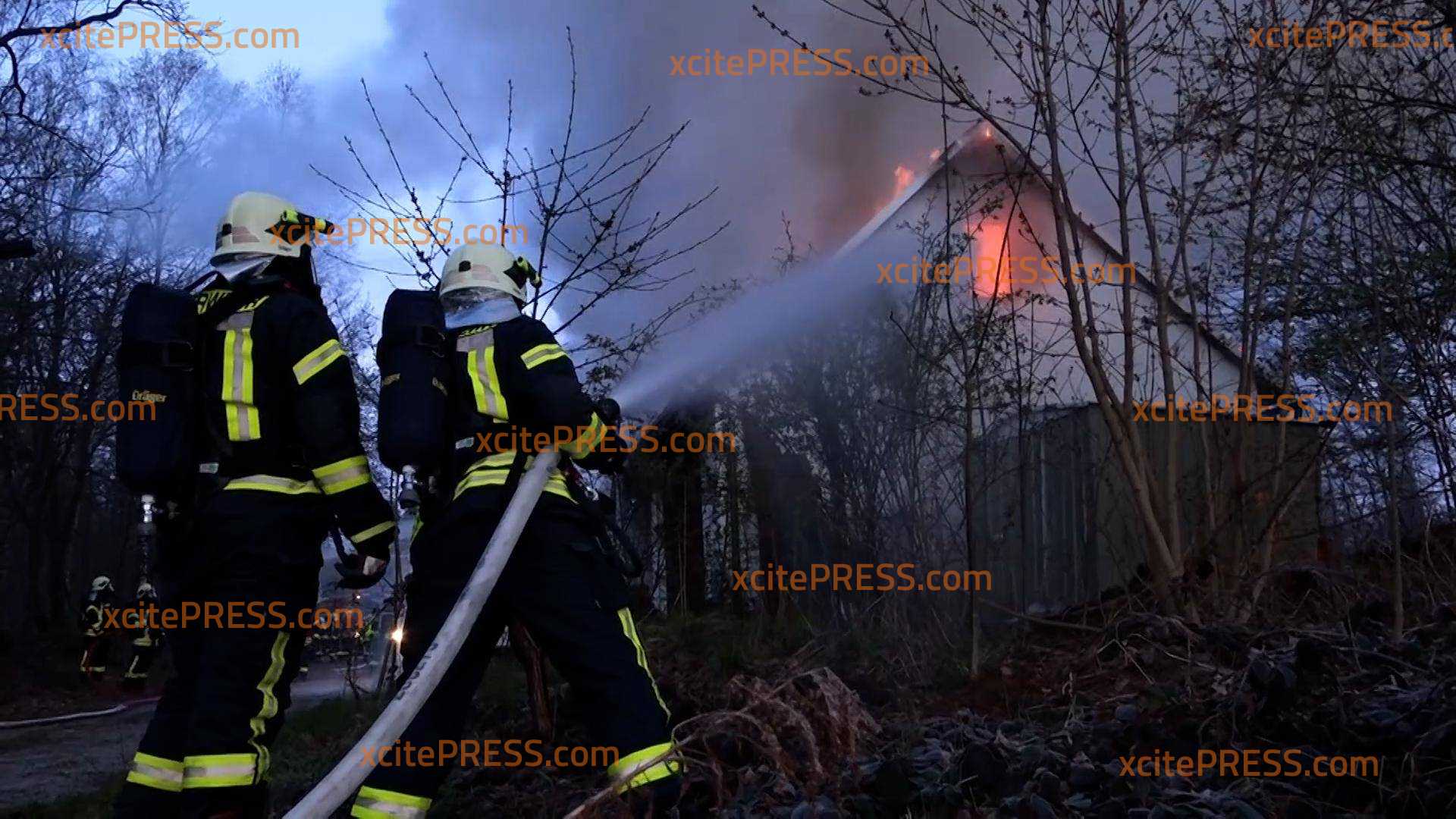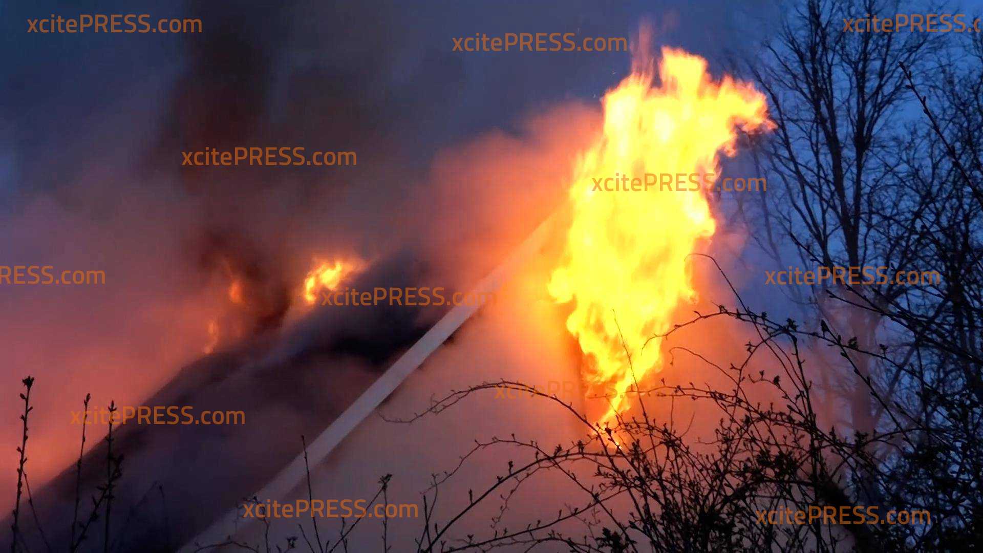 - Flammen schlagen aus Fenster und Dach