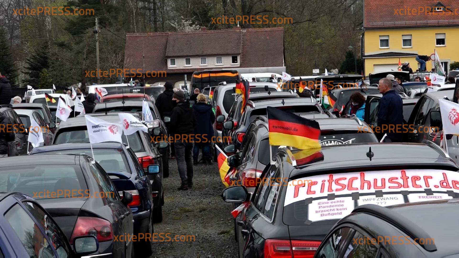 Aus mehreren Orten - wie Dresden, Sebnitz, Bautzen - starteten mehrere Autokorso unter dem Motto "Autokorso zur Wiederherstellung der Demokratie und Grundrechte" nach Großschönau. Der Ort sei symbolisch gewählt worden, teilten die Organisatoren mit. Allerdings fahre man nicht zum Haus des Ministerpräsidenten. Gegner der Corona-Maßnahmen hatten Ministerpräsident Michael Kretschmer dort im Januar beim Schneeschieben verbal attackiert. Dennoch wurde das Haus heute durch die Polizei abgeschirmt.