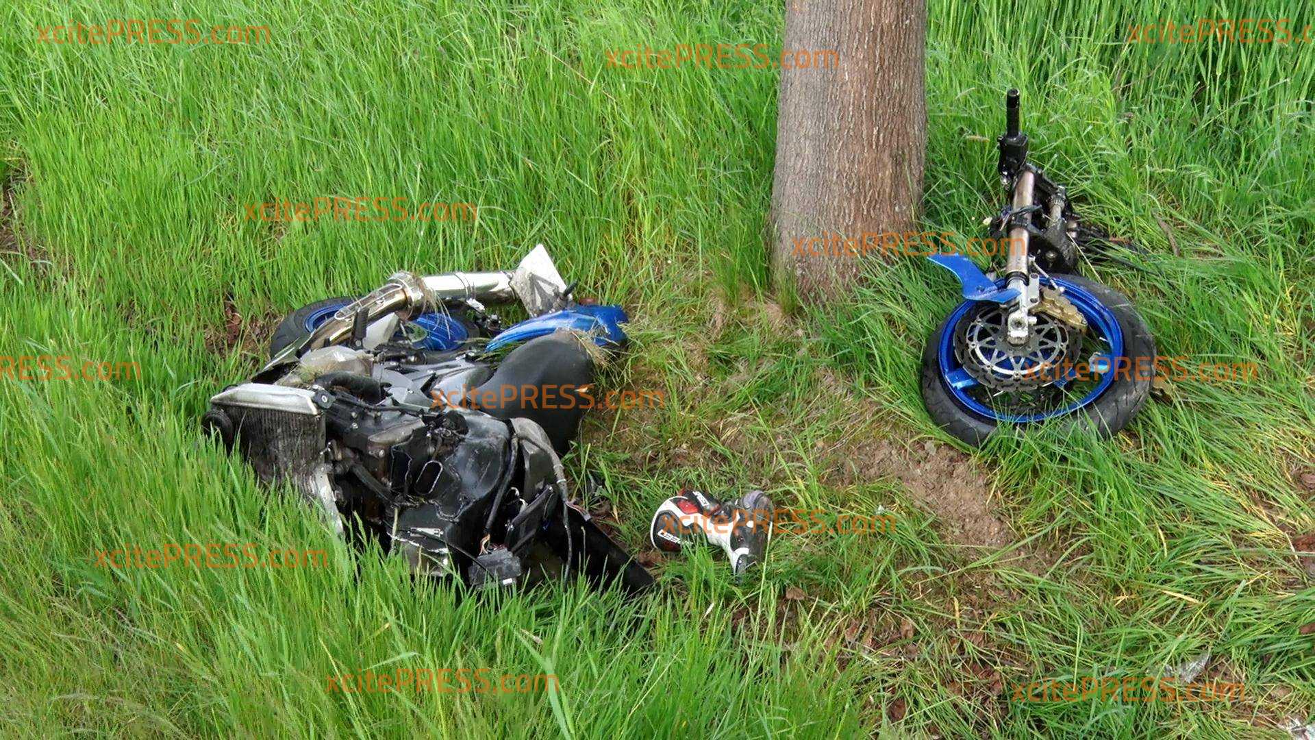 Das Motorrad wurde durch die Wucht des Aufpralls bei dem Crash in zwei Teile geteilt.