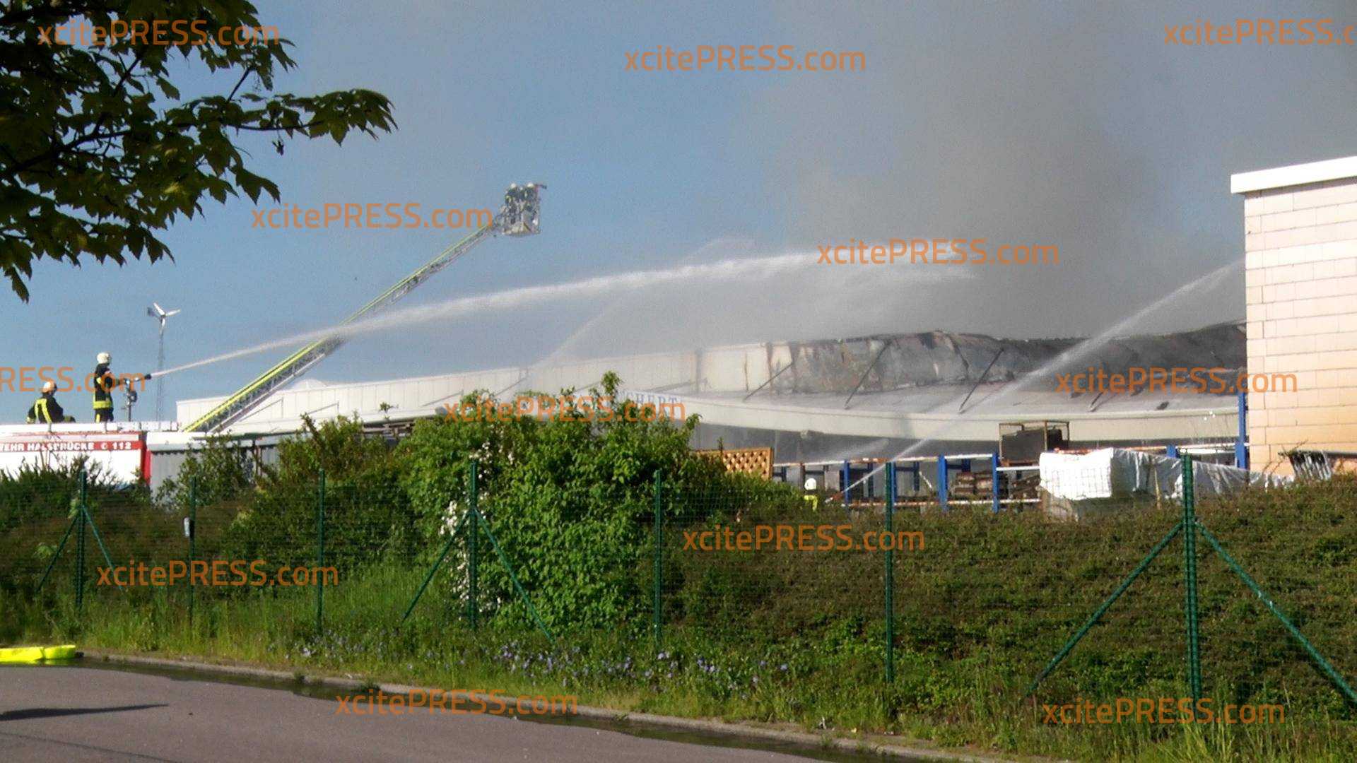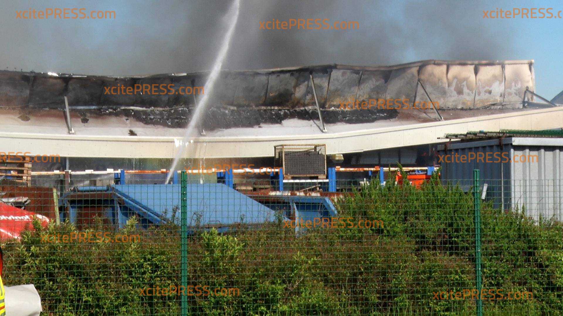 Großeinsatz für die Feuerwehr - Lagerhalle im Gewerbegebiet in Vollbrand