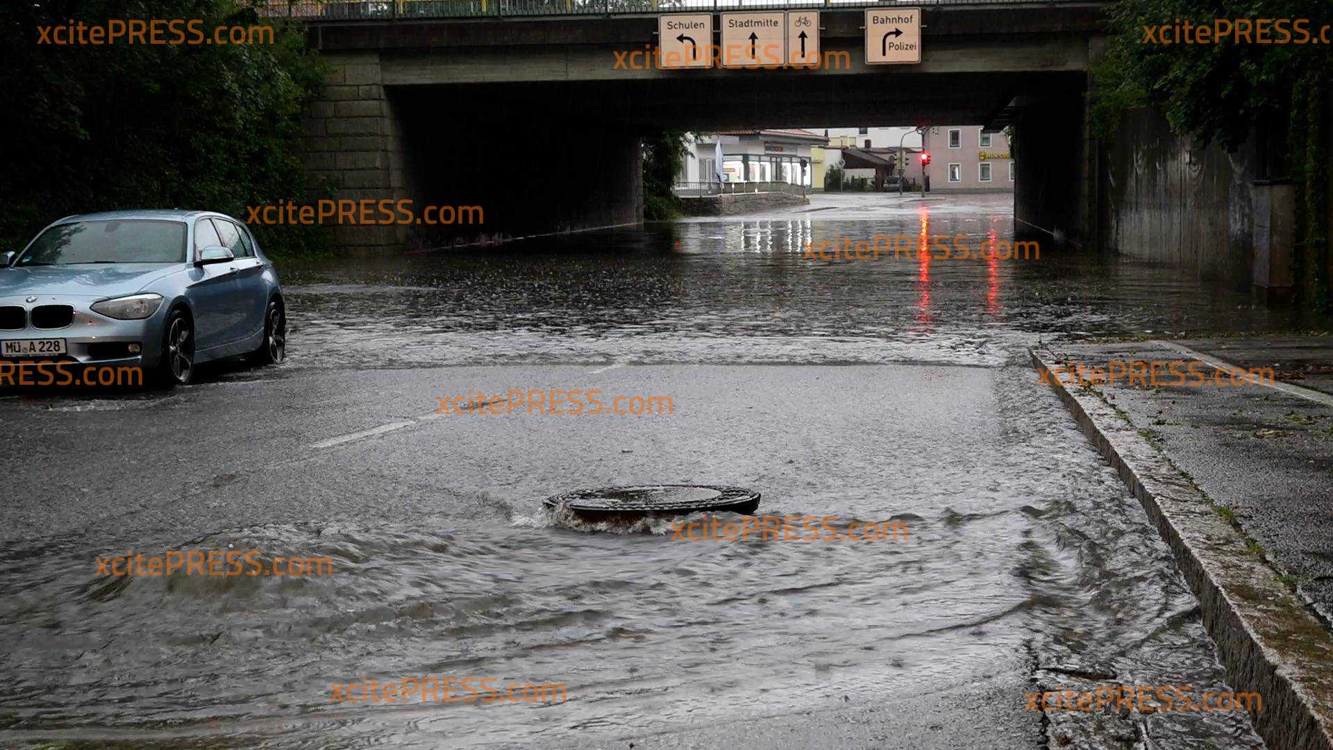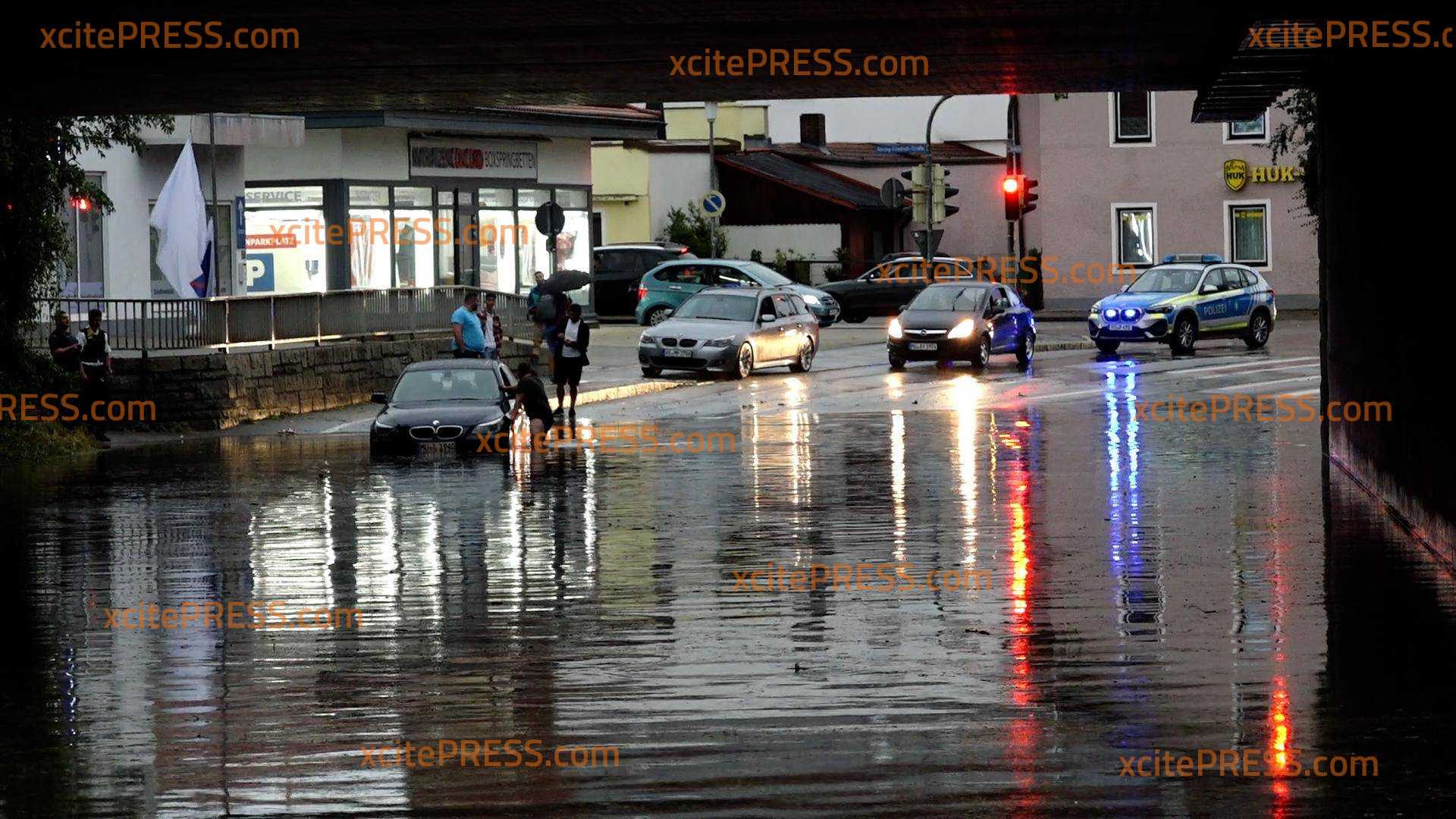 Schwere Unwetter sind am späten Dienstagnachmittag über weite Teile Bayerns gezogen. Auch über die Kreisstadt Mühldorf am Inn westliche von München. Hier rollte eine bedrohlich anzuschauende Unwetterwalze über die Ortschaften hinweg. Der Aufzug der Front war spektakulär, die Wolken wirkten sehr bedrohlich, der Hagelkern schimmerte deutlich in grüner Farbe. Dann brach ein Sturm- und Blitzinferno über Mühldorf herein. Autos finden an zu wackeln, Bäume kippten nach und nach um. Dazu kam plötzlich Hagel, es bildeten sich Ansammlungen von Hagelkörnern, Abflüsse verstopften. Der Starkregen konnte nicht mehr abfließen, es kam an vielen Stellen zu Überflutungen. Vor allem Unterführungen liefen voll, Autos blieben in den Wassermassen stecken. Einsatzkräfte sind noch immer im Dauereinsatz, es gibt unzählige Einsatzstellen abzuarbeiten.