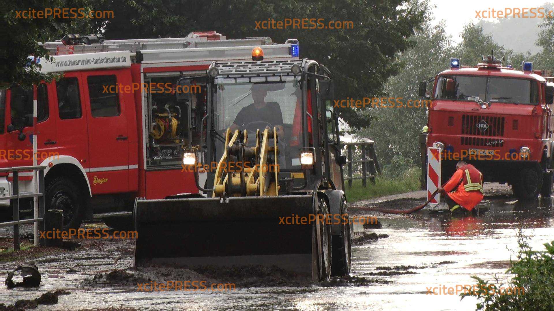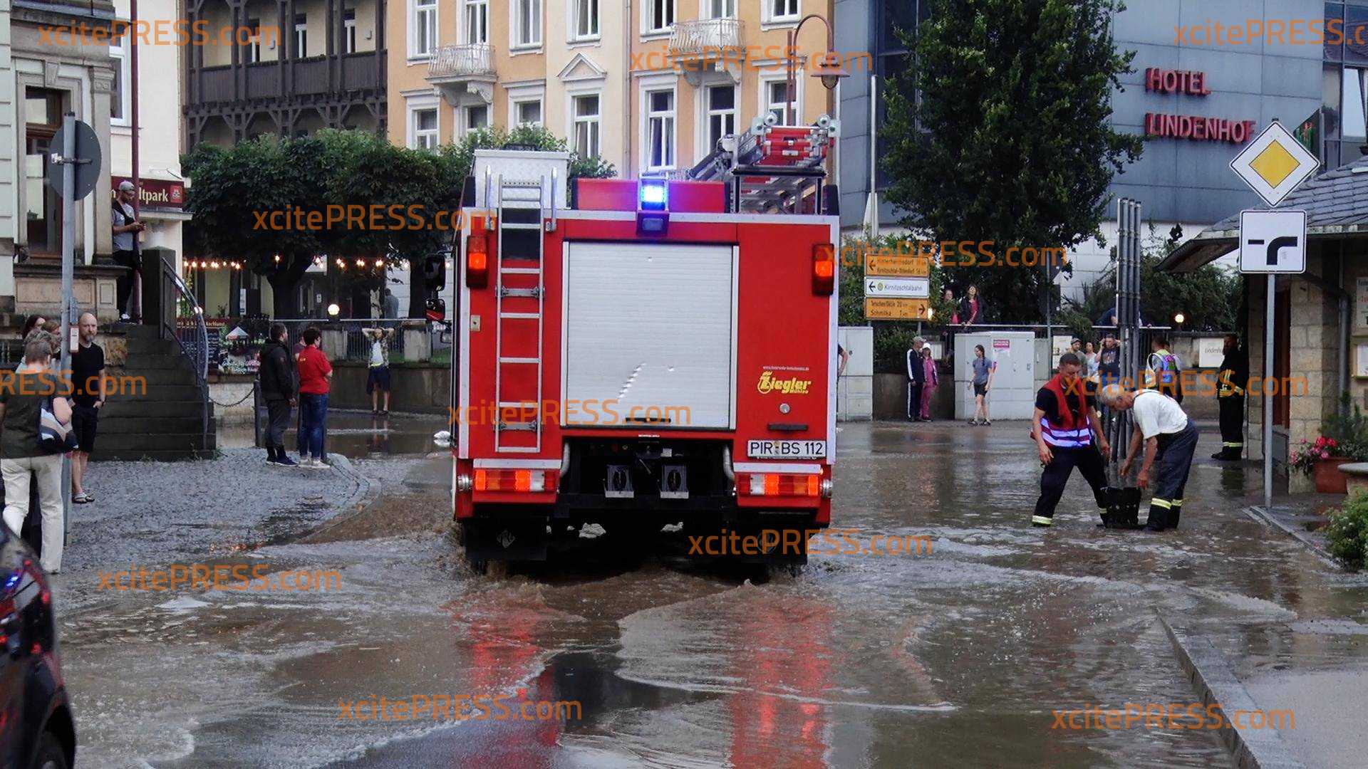 Am Samstag kam es durch Starkregen in Bad Schandau zum Abrutschen von Hängen. Dabei beschädigten Schlamm und Geröll Grundstück am elbseitigen Ufer. Außerdem trat die Kirnitzsch über das Ufer und flutete auch Straßen. Feuerwehr und Polizei sind im Dauereinsatz. Durch Schlamm verschmutzte Straßen werden beräumt, doch die Gefahr von Hochwassers durch die Kirnitzsch besteht weiterhin.