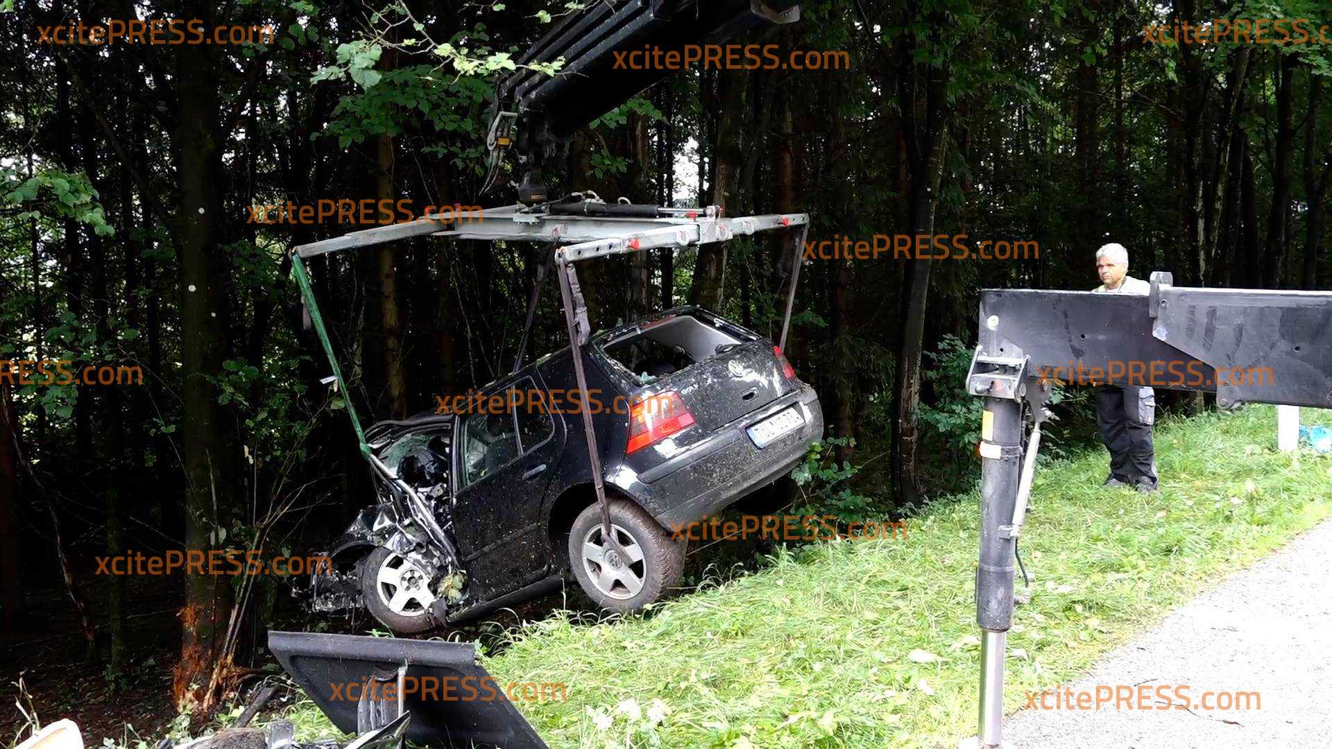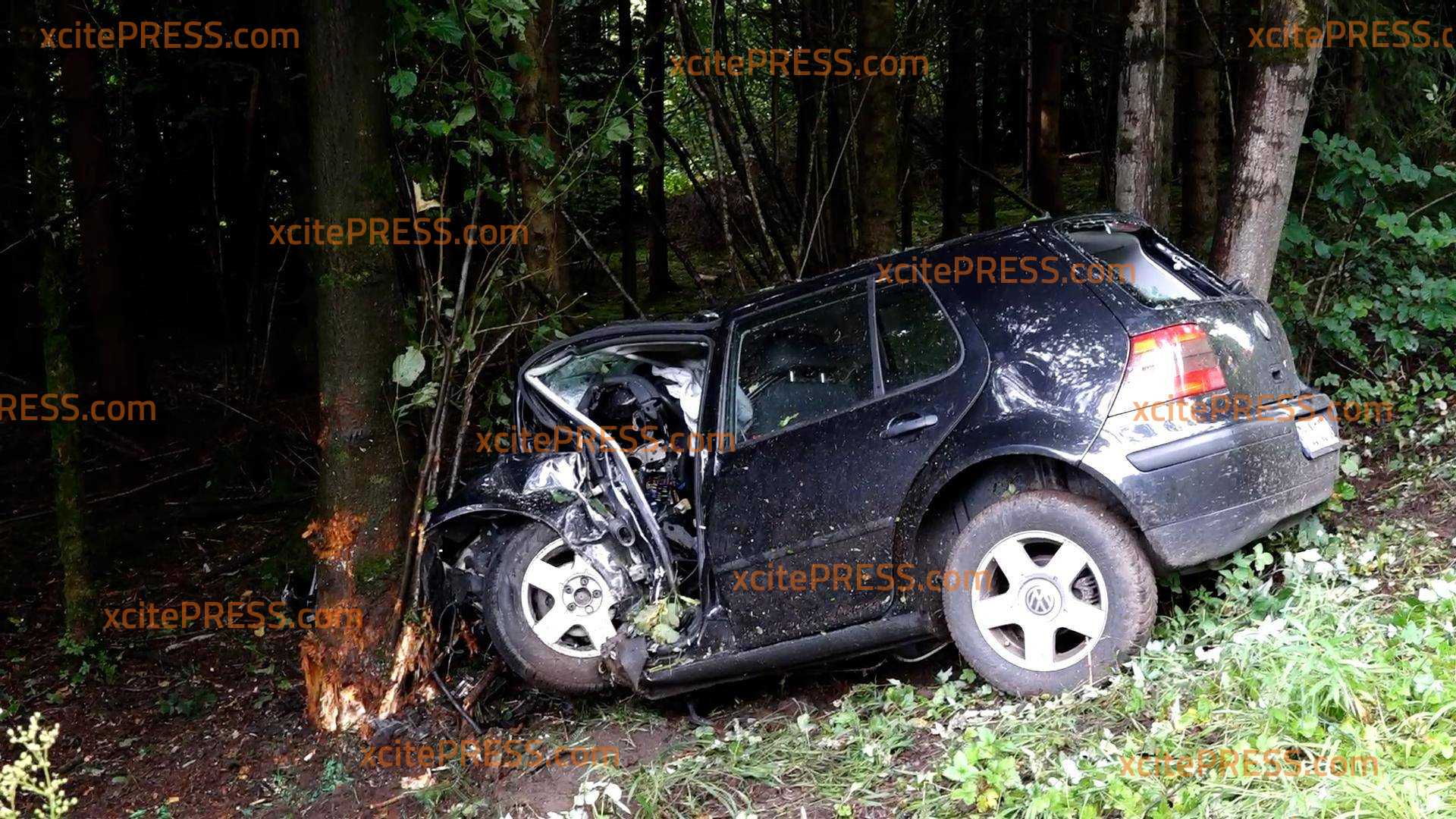 Tödlicher Crash: VW kracht in Baumgruppe - Fahrerseite wird völlig demoliert