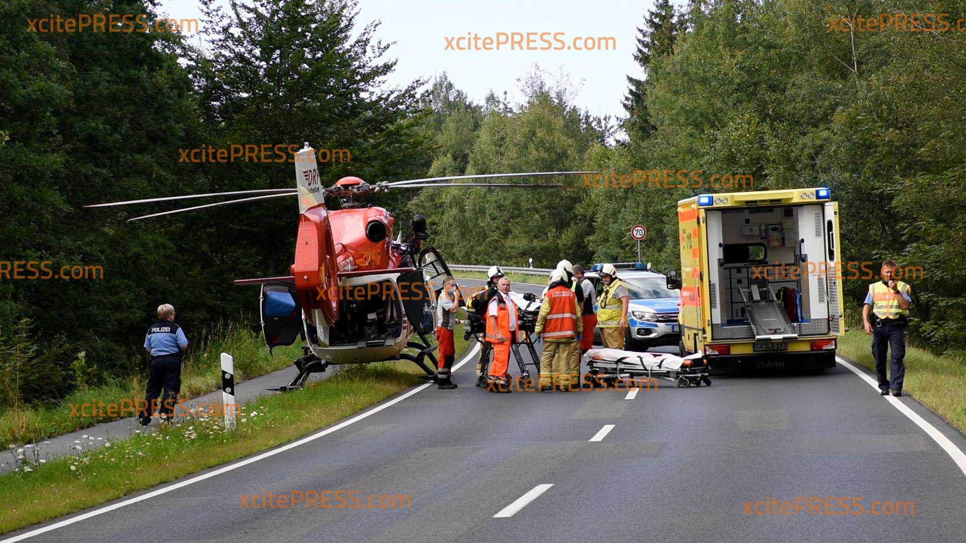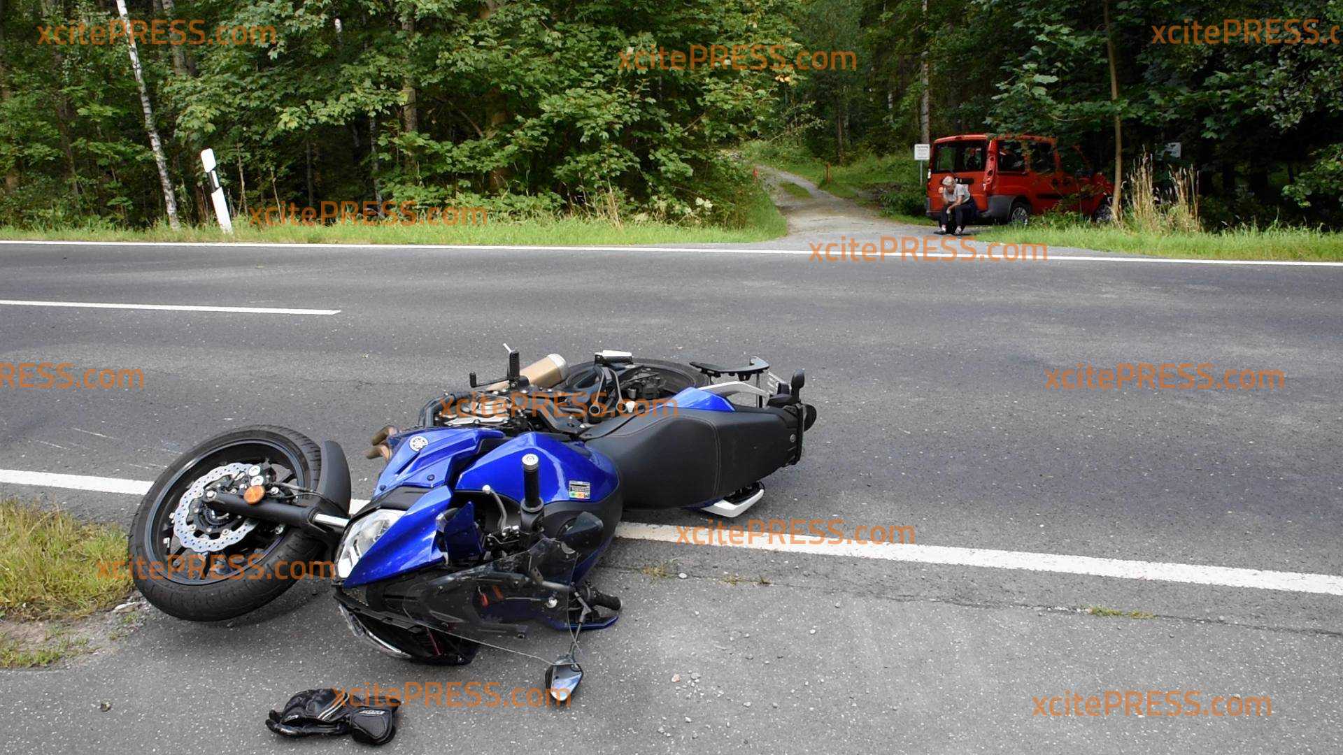 Ersten Angaben zufolge sei der Fiat in Richtung Seifhennerdorf unterwegs gewesen und wollte in einen Waldweg einbiegen, als ein Kradfahrer zusammenstieß. Dieser sei gegen das Heck des Fiats geprallt und mitsamt des Bikes gestützt.